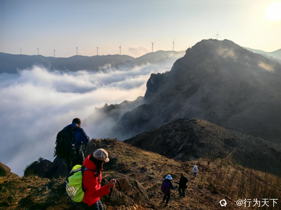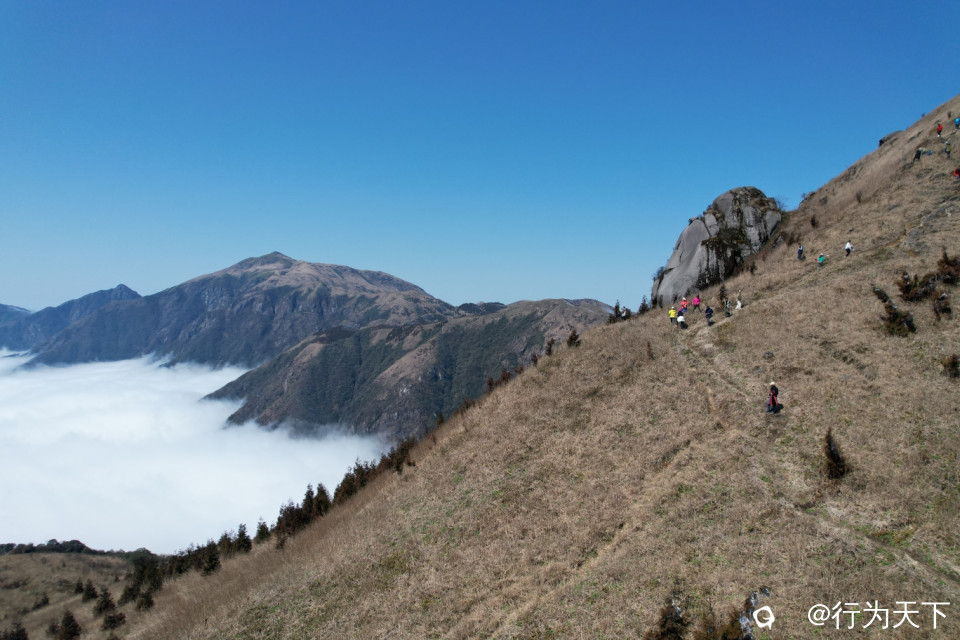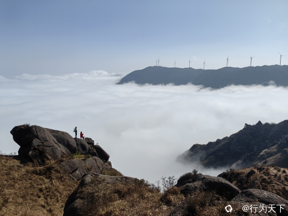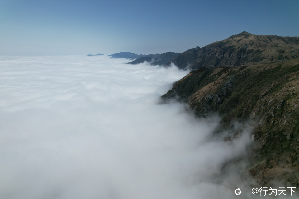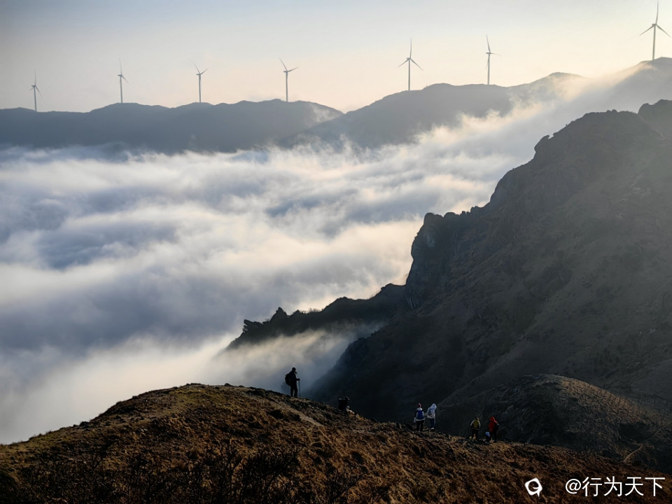 看着镜头里悬崖上一个个舞动的身影,是那样身姿矫健,那样欣喜若狂,就像是一个个无拘无束的小孩在嬉戏、玩闹般。云海时而在他们身边飘过,时而在悬崖上张牙舞爪,像是一群天使在腾云驾雾一般。我赶忙收拾好无人机,也像尽快加入这场云海盛宴,马不停蹄的往上爬。