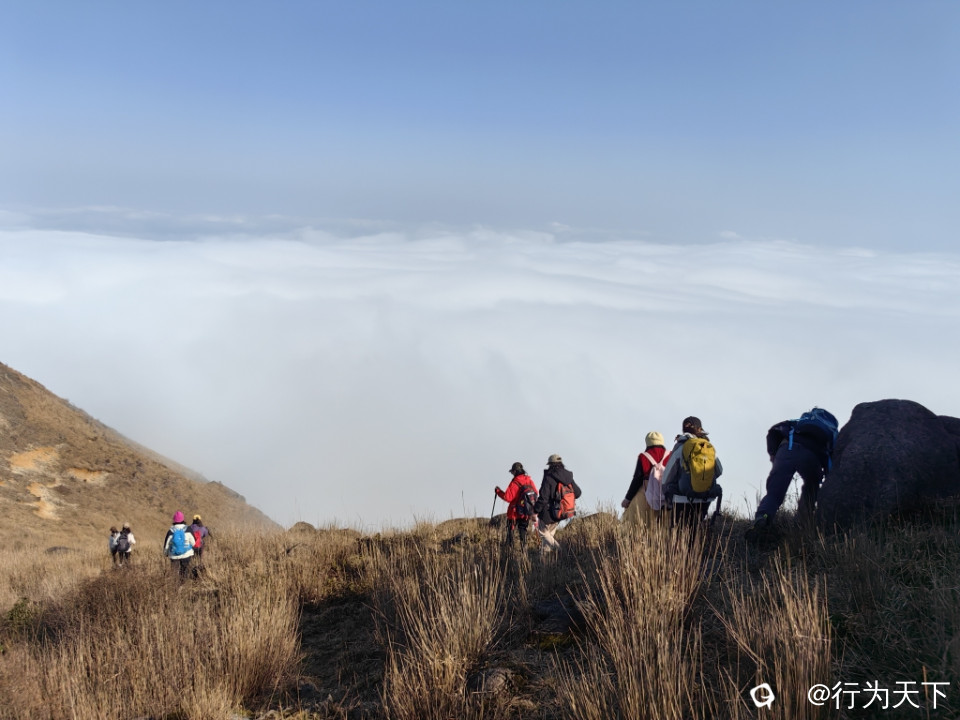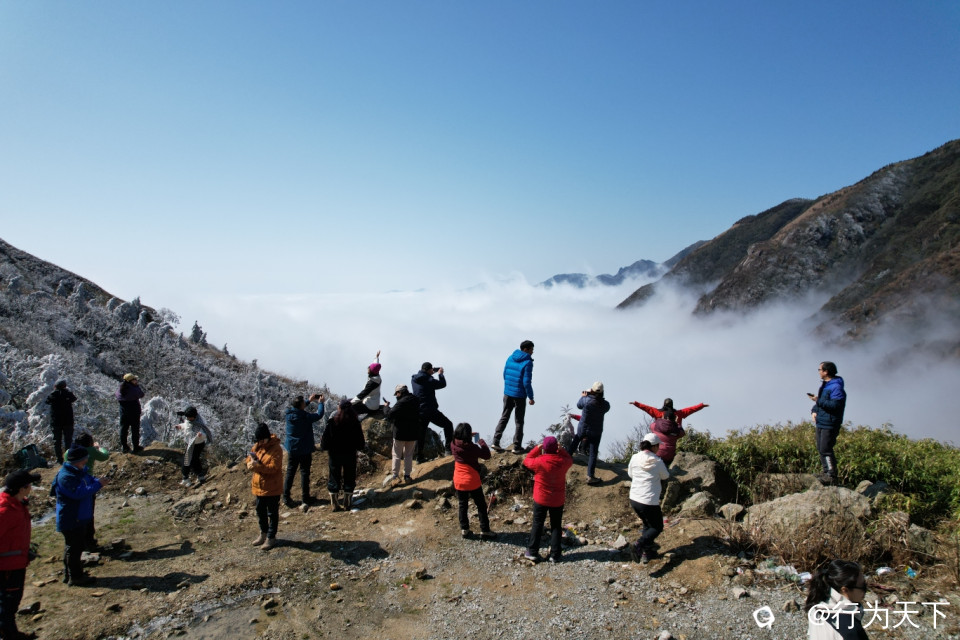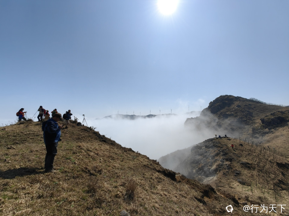 就这样行车约3个小时,在到达南洞茶坪网红树的位置,小巴车像是突然冲出浓雾的圣斗士,大伙眼前一亮,回头只见层层飘逸的云海,日光高悬,云彩如一片片云的海洋,浓重而密致。快看,云海,只见群友们一阵阵欢呼,看来今天的运气来了,还是轰轰烈烈的奔赴而来。