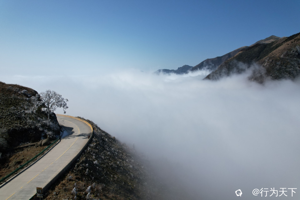 此时的群友们早已作鸟兽散,争先恐后,抢占制高点,生怕错过这美好的瞬间。我也不例外,架好延时拍摄,又赶忙升起无人机,镜头里那一幕幕腾飞的云海,让人直呼过瘾。那一刻,所有人似乎拼住呼吸,静心的抓拍,内心却是波澜翻滚,汹涌澎湃。当无人机飞跃高山峡谷、雾凇丛林、盘山公路,就像是等候多时的老友,一一进入镜头,一网打尽。我想此刻的无人机存储是不够的,有些沉甸甸的,就像是满载百万巨款一般,手有些微微发抖。
