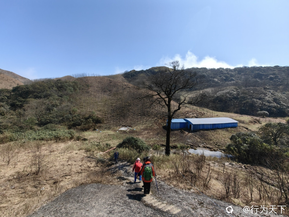 随着小巴车爬上滑雪场的山顶,只用了十几分钟,便来到一个岔路口,这里就是开始要徒步的青山口入口。大伙背上背包,顺着轨迹从养牛场的工棚经过,沿着山路开始徒步登山。养牛场的周边是一条小溪和一个人工挖掘的小池塘,不远处还圈养着一些家禽,满是乡村田园风光,只是大伙忙着赶路,没有停留欣赏。