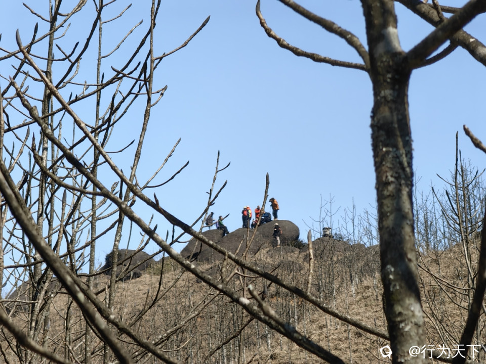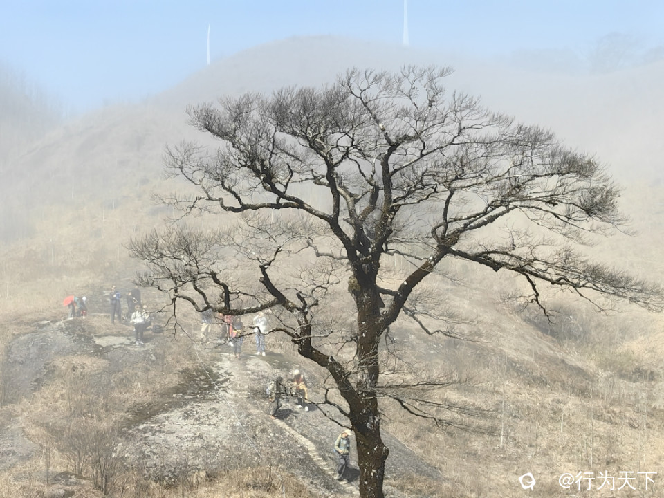 查看地图,才知道这里就是有名的“孤树冲”,顾名思义,也是因为这棵唯一的古树而得名,其实这里更是户外爱好者们扎营露营的五星营地。抬头看古树的造型,像是一把张开的老扑扇,发黑的树枝,似乎在等候春天的到来,期待又一次老树新芽,春暖花开。
