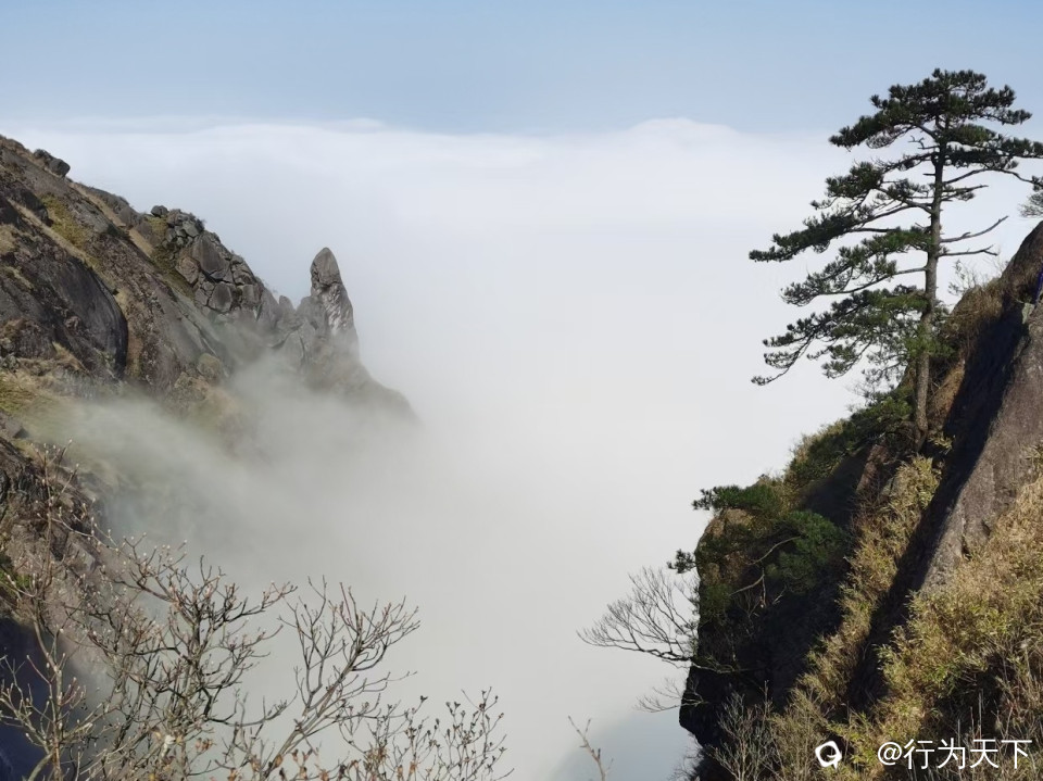 云雾层层叠的缭绕在修仙石周边,形成如梦如幻的神奇仙境,胆大的群友为了看得更真切,还慢慢靠近悬崖,走到悬崖边上,与迎客松来个亲密接触,现场气氛一度紧张,危险至极。