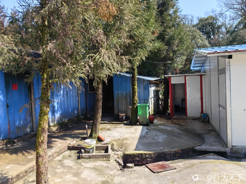 我简单抓拍几张,便跟随群友们从圈舍边斜穿,再从一排排厚朴树下走过。据说厚朴树是一种中药材,全身可以入药。树早已种满山野,只是大山里的春天还没到来,树枝依旧是光秃秃一片。
