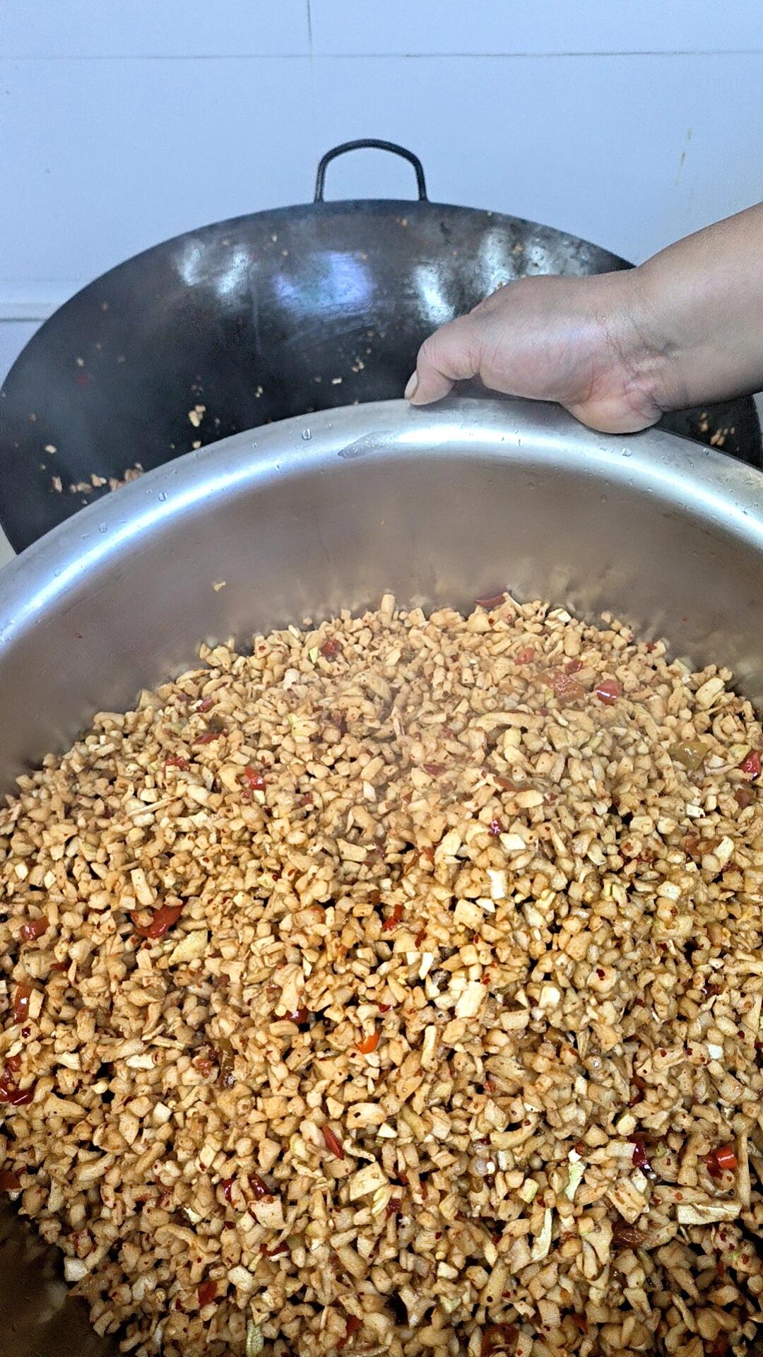 现炒酸豆角,酸笋,酸萝卜,看着冒着热气的配菜就很有食欲,连辣椒都准备了好几种,这在米粉店里面算少见的了,很有特点。