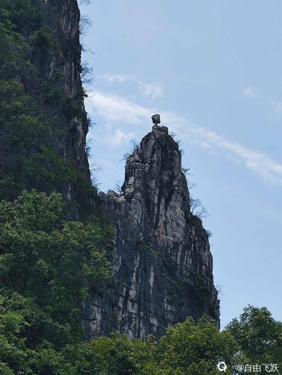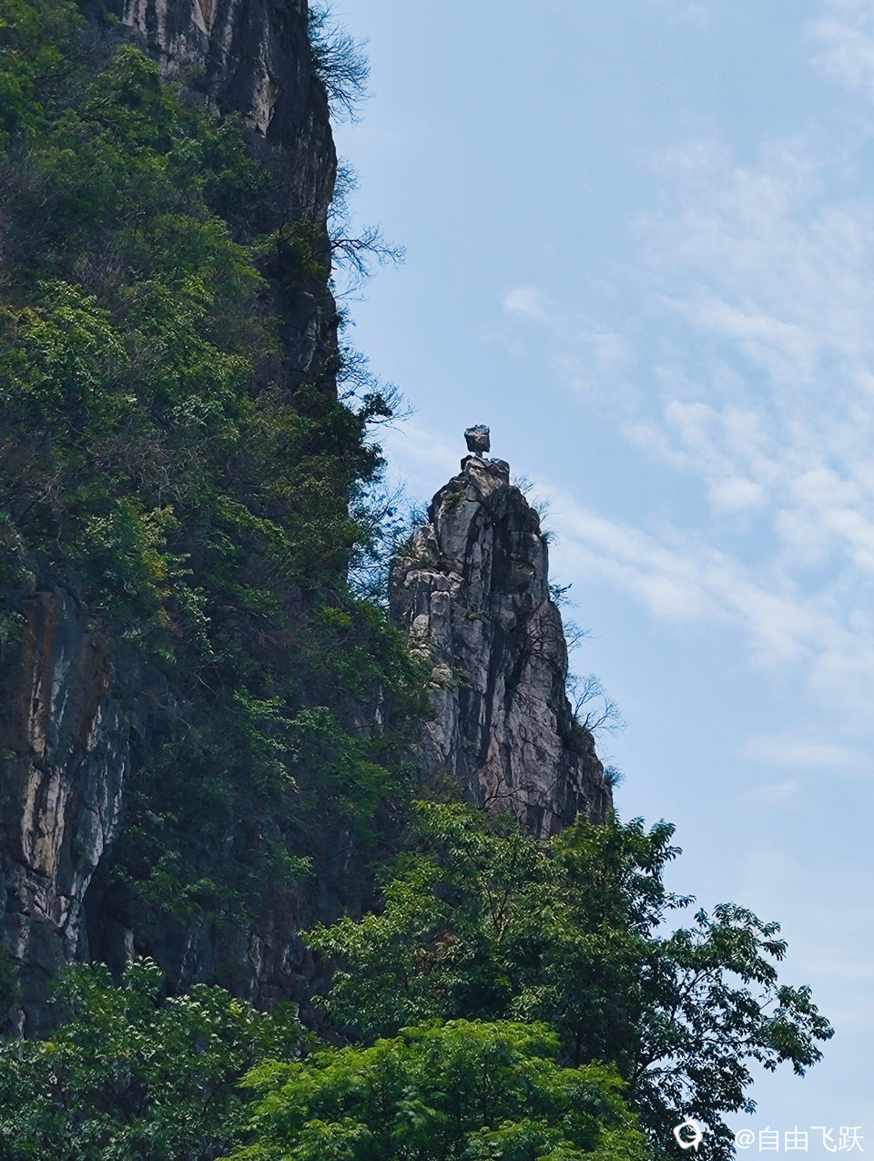桂林市内这块石头千万年矗立在那里,造型太特别了,每个望见的人都会惊叹,这块石头是哪年形成的,怎样变成这个样子的,谁都不知道。那年看见有个人爬了上去挂起一面小红旗,后来又有人上去取走了小红旗。