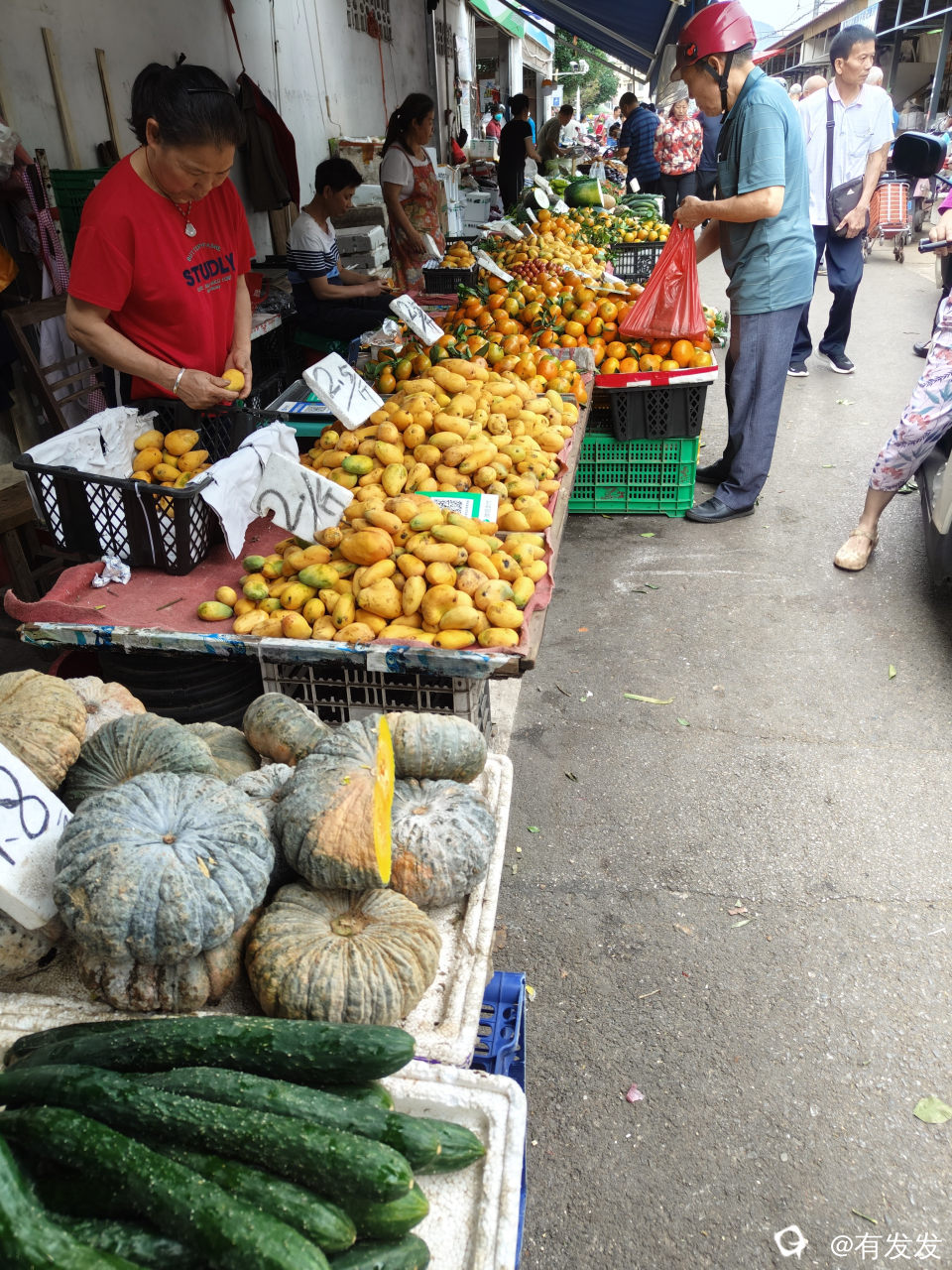 今天到市场逛街,这里的东西好多,蔬菜水果满街都是,摊位上的,街边的都摆满了。我特别喜欢买本地人种的,新鲜的水果和蔬菜。