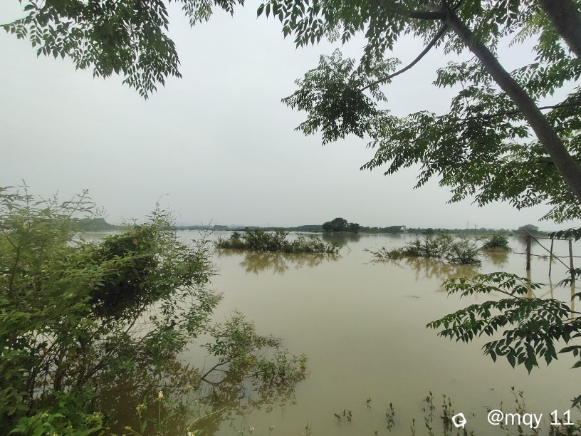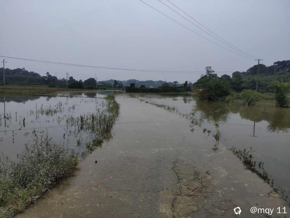 乡村道路也还泡在混浊的龙舟水之中,如洲碑村,腊村窑头村再往前的部分路段,道路都还在水中浸泡。