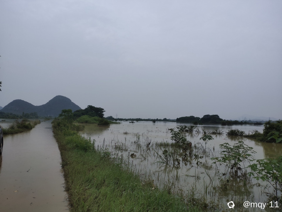 在城区仿佛只是一转眼的功夫,可是已经过去几日的雨水,在桂林临桂区四塘镇的乡村道路,依然清晰可见,海的世界。