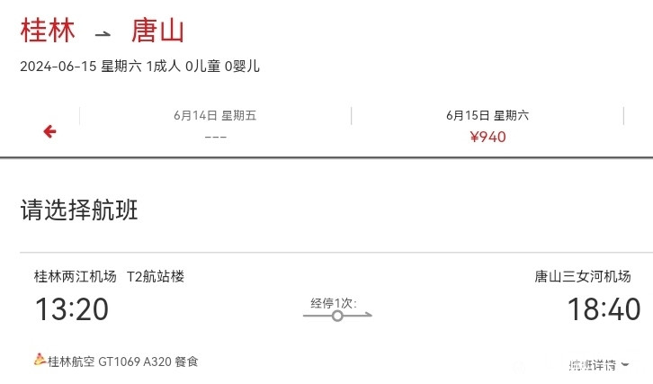 目前,首航飞唐山仅需940元。