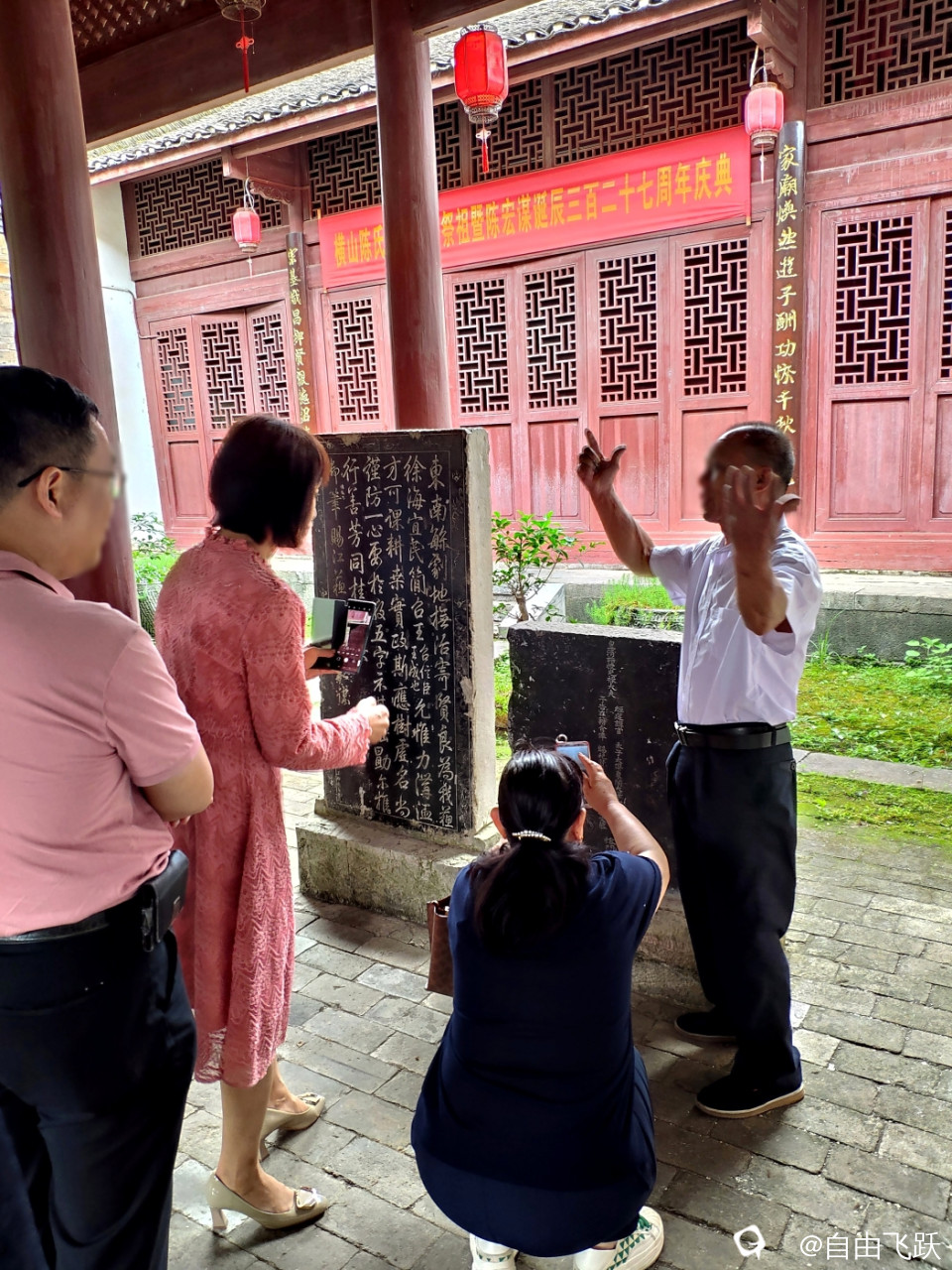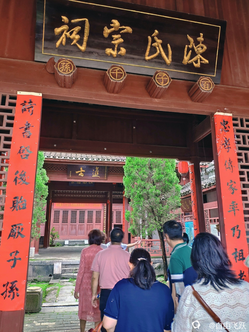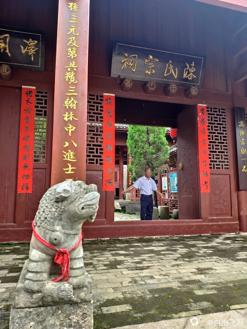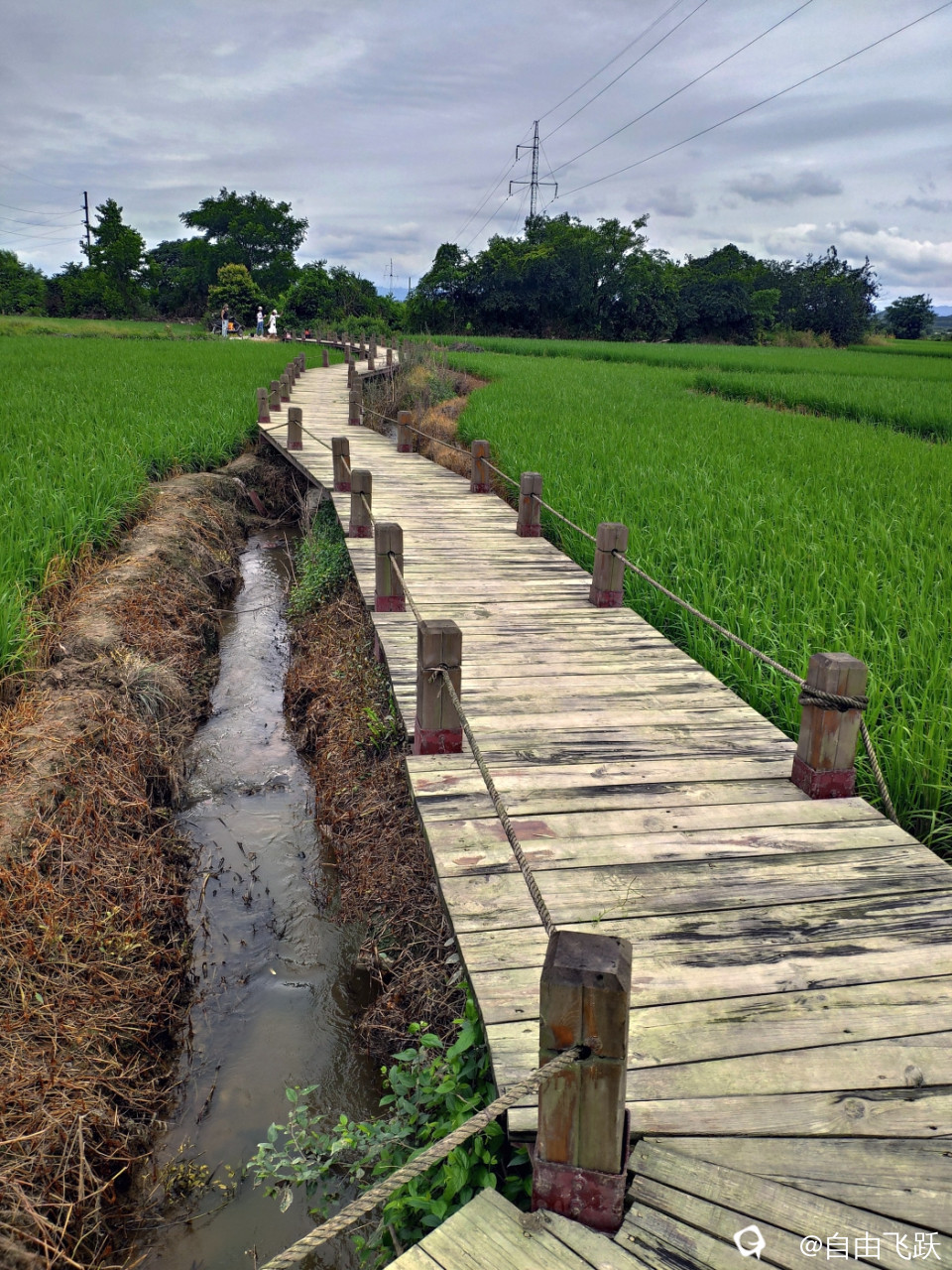 沿着寺外村路再往里头走就是禾苗青青的稻田,田中有观光木栈道,穿过稻田转到山下就可以去爬山,以前登过顶,虽然不高但是又晒又热差点中暑,现在没有巨形画了也没什么登法了,就进山脚的陈氏宗祠参观,正好遇上讲解员开门迎客,趁机参团进去,学到不少历史文化知识,收获满满。