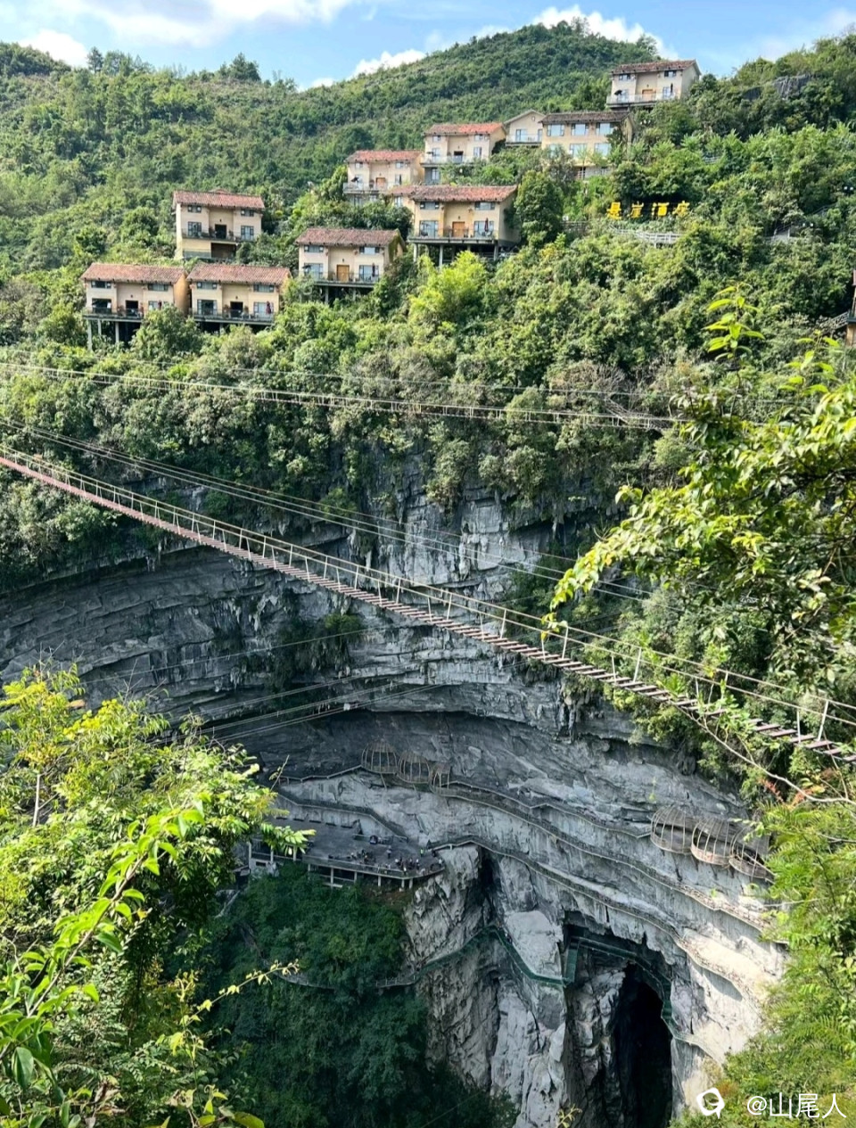天坑欲渡一桥牵。