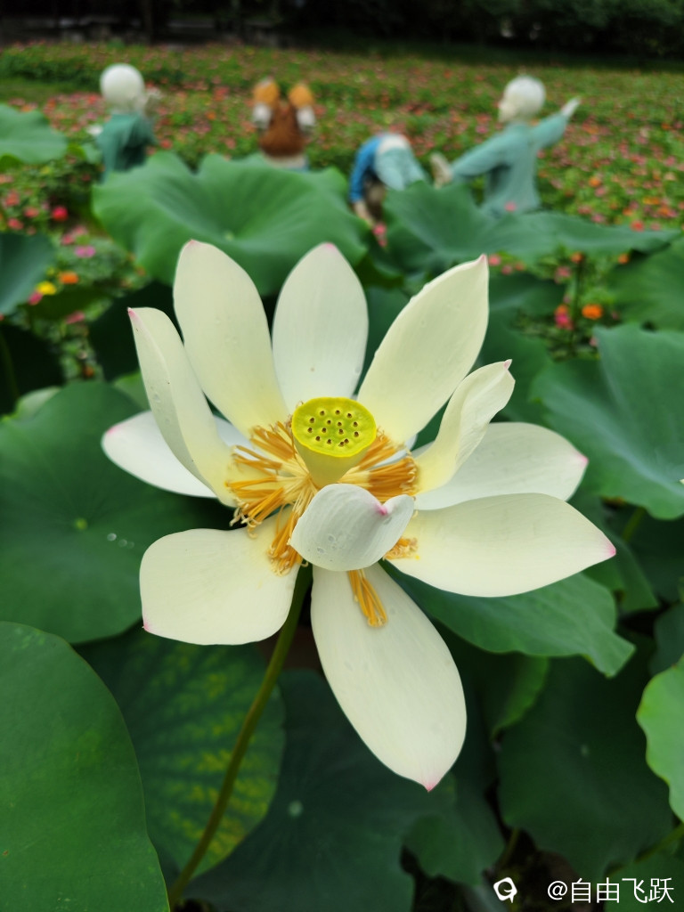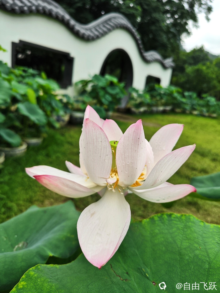 昨夜猛雨过后,西山的盆栽荷花没有被淋残缺,反而更加娇艳,今天下了半天雨,荷花可能是受到花神庇护,依然一朵朵白嫩红润身姿曼妙,还能嗅到阵阵扑鼻异香,设想贾宝玉看到此情此景,肯定会吟哦陆游诗:“花气袭人知骤暖”,虽然说念叨的是花袭人,但是他更愿意把林妹妹比做出水芙蓉。
