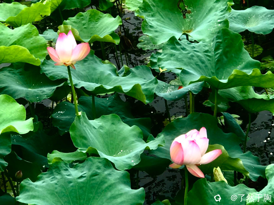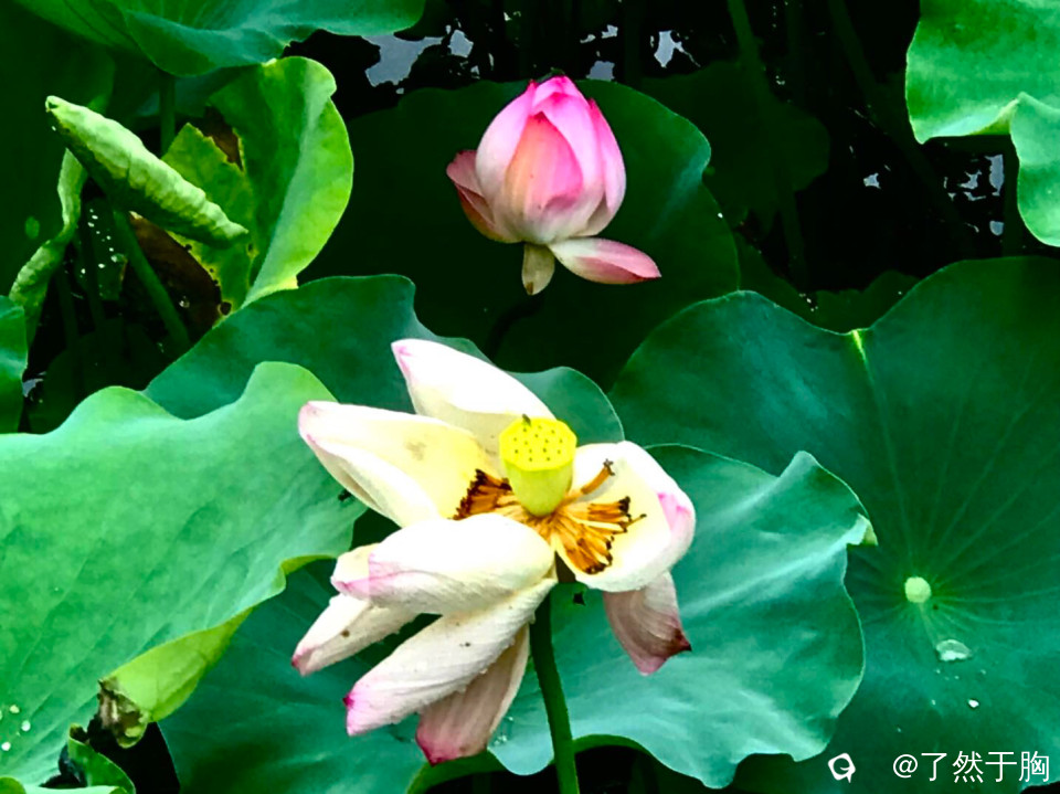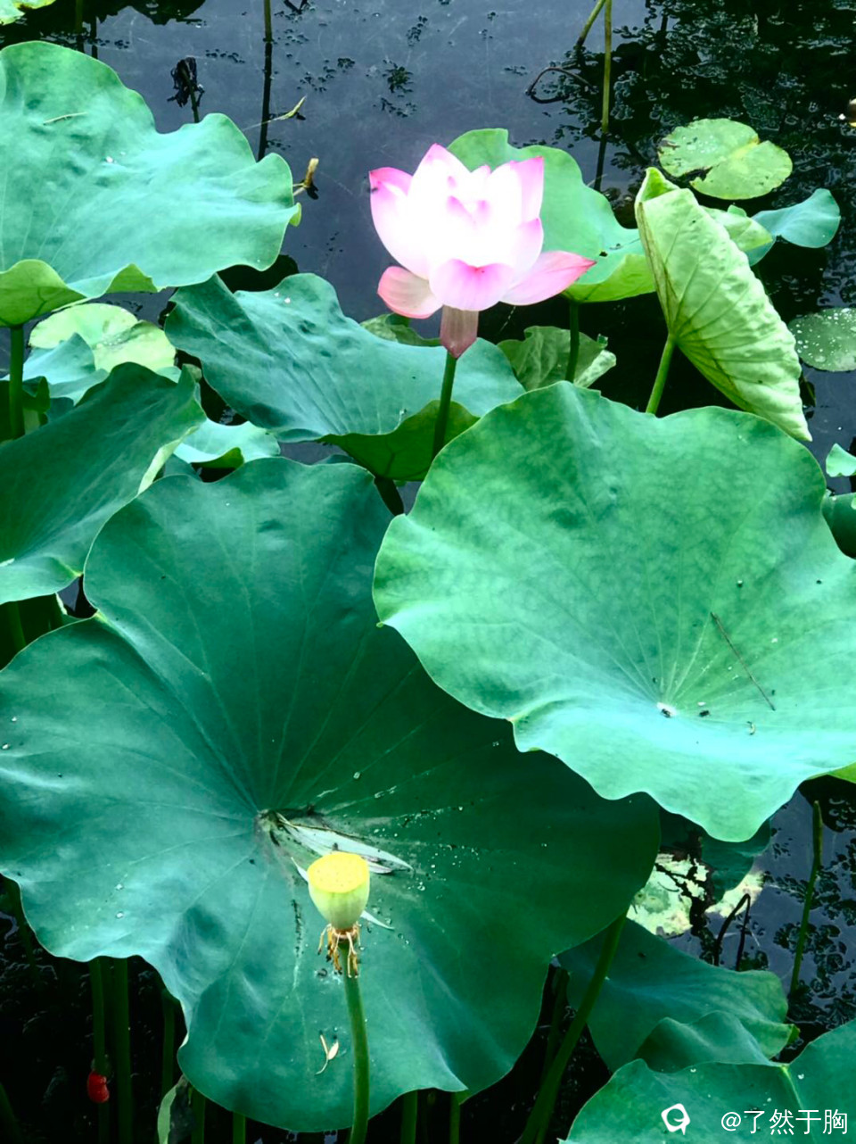 灵川县潭下镇山口村的荷花池,荷花已是渐次开放。虽说还未满池荷花,稍显稀疏,但环池细赏,有含苞待放的,有昂首怒放的,有将近凋谢的,还有已成莲蓬的,各具特色,让人品之余味无穷。