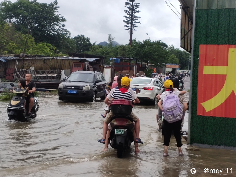 这是桂林临桂大律街路上,被暴雨积水成渊的场景。