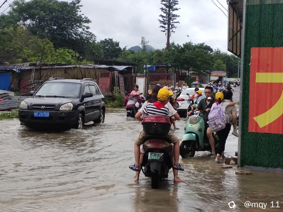 这场暴雨,已经持续了几天,没有排水系统的该条道路,在其他路段都已经排完水了,这里依然是积水成河的场景,每天这里都有几千人次路过这里。