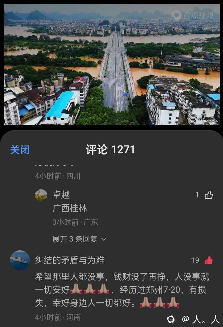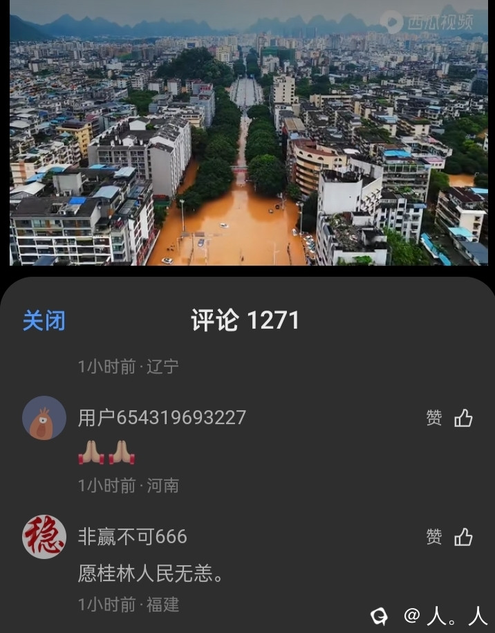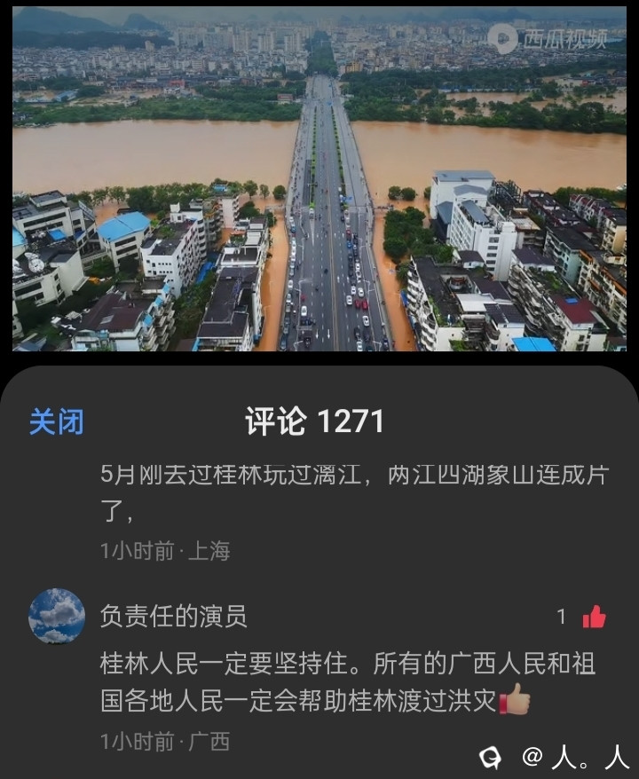 洪水已经在慢慢消退了,桂林人经验丰富,目前还没什么伤亡情况。