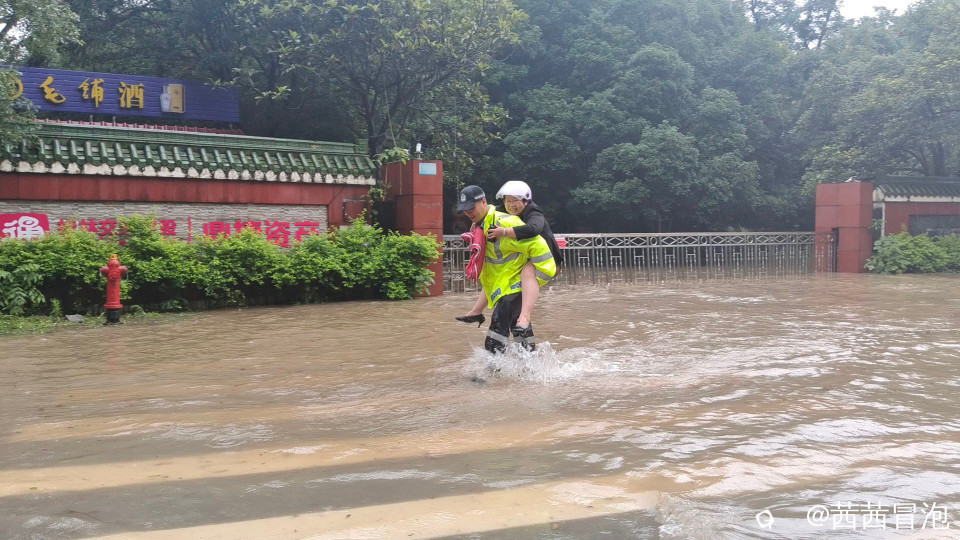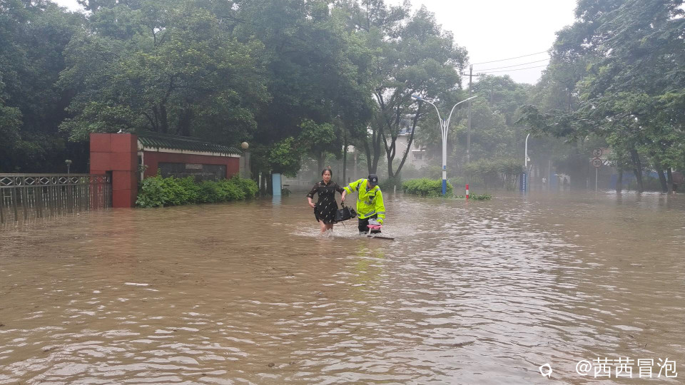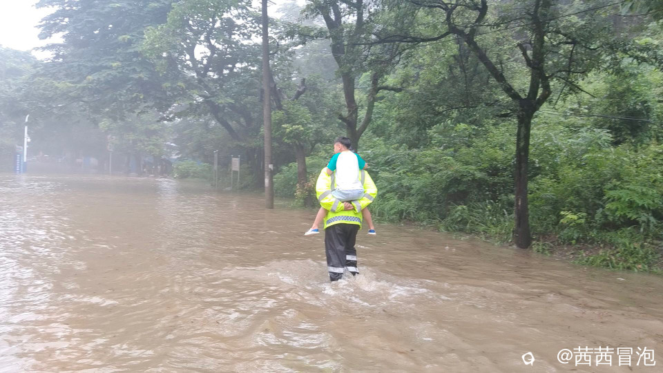 昨天的大水里,桃花江边有抹绿色的身影忙碌奔波,我觉得他帅呆了!