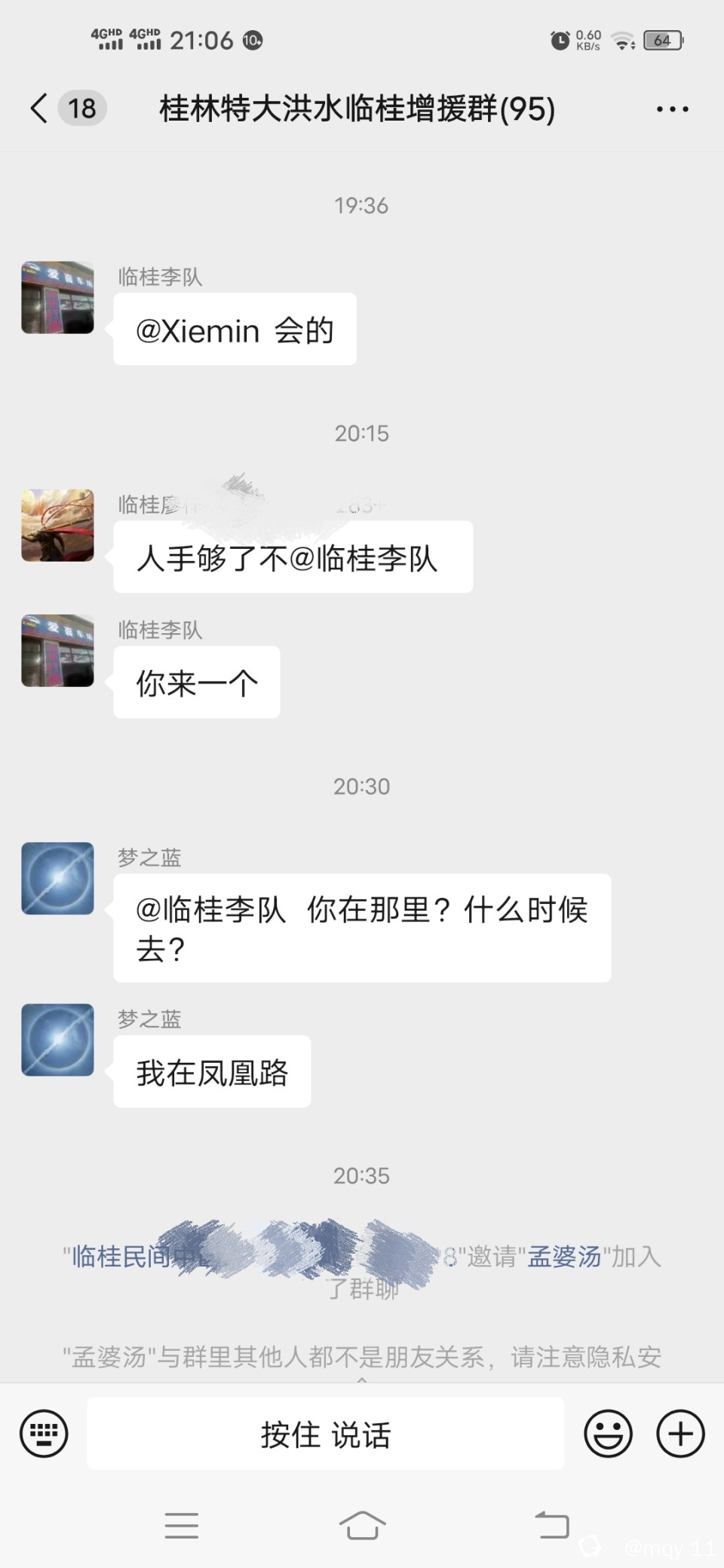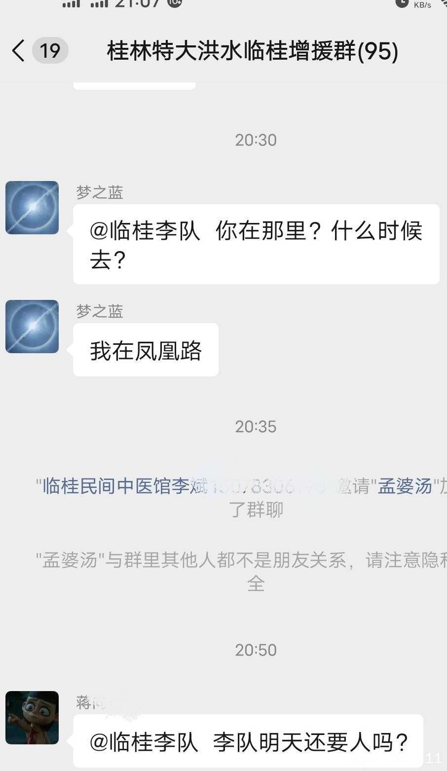 还有些志愿者因为白天没有去,下班了,还在联系临桂李队,请愿前往一线。