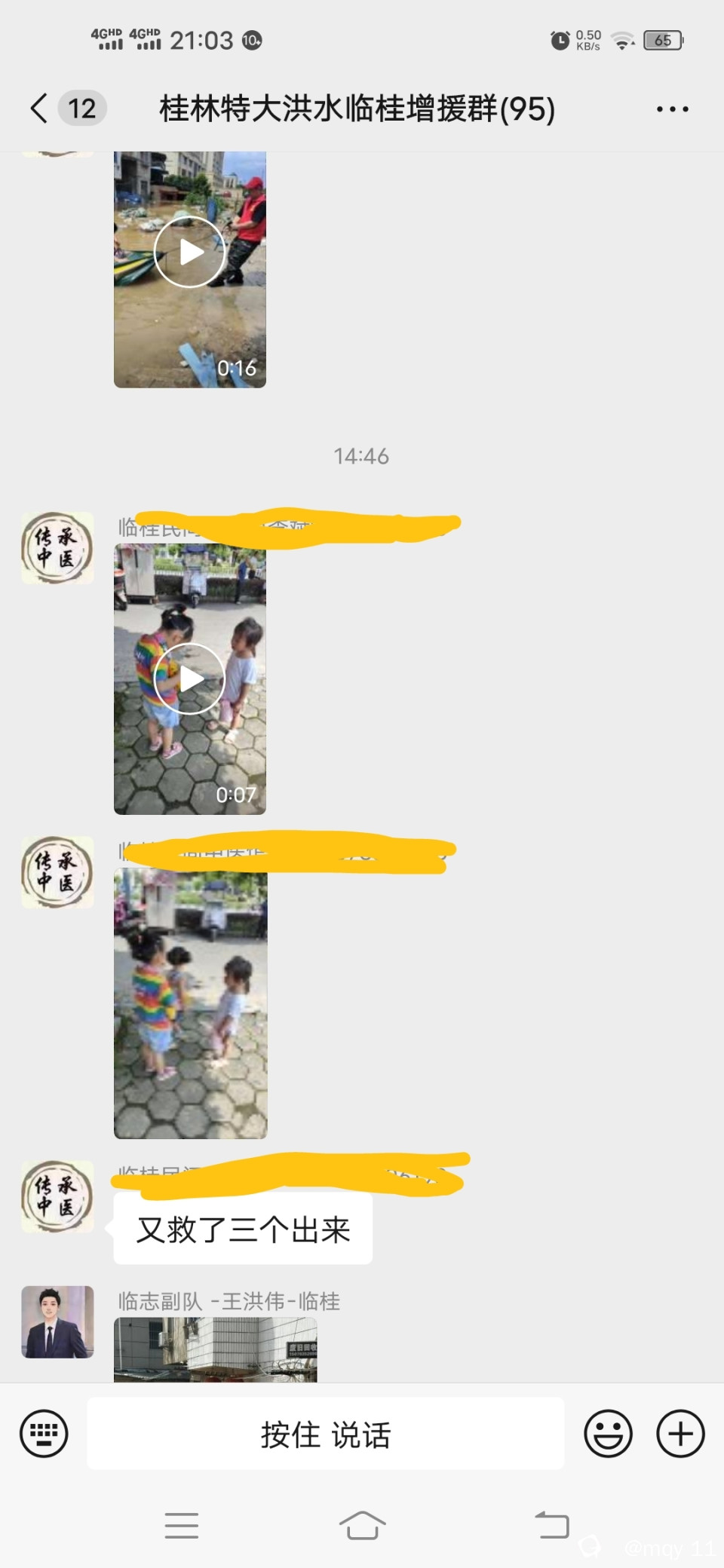 都说一方有难八方支援,老城区,临桂新区都是一家人,哪里有需要就往哪里去,有力的出力,有车的出车,有物资的出物资的,有些未能前往的,也在群里做好帮扶对象,救助对象的情况登记,及时汇总统计好,报送到前线,按照轻重缓急,区域划分汇总,从而让前线人员能第一时间拥有准确的定位,救助需求,使得短时间内能解决更多需要救援人员的问题。