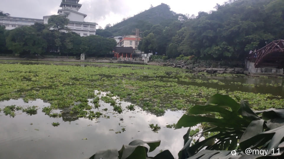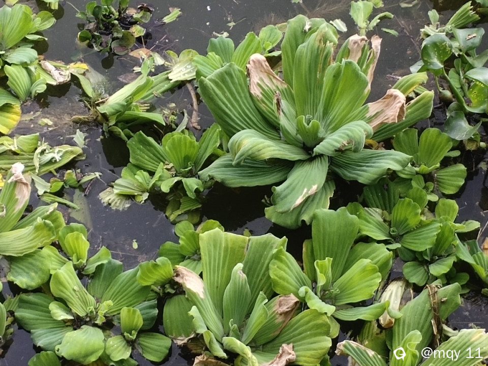西清桥旁的湖面,突然出现一大片的绿植,飘浮在湖面之上,样子有点像“莲花宝座”一般。