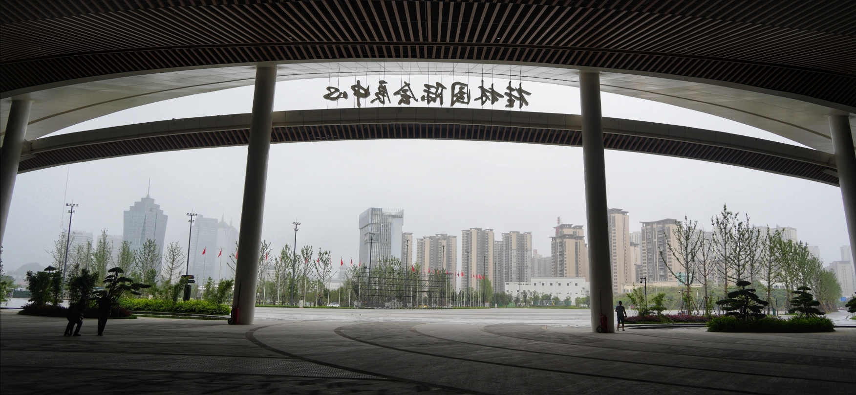 月前的桂林已进入南方的梅雨季,我们来到这里,无人打扰的安静拍摄国际会展中心外观建筑。 不一会儿,天空下起了淅淅沥沥的小雨,为躲雨定格了这张从会展看新临桂的瞬间。