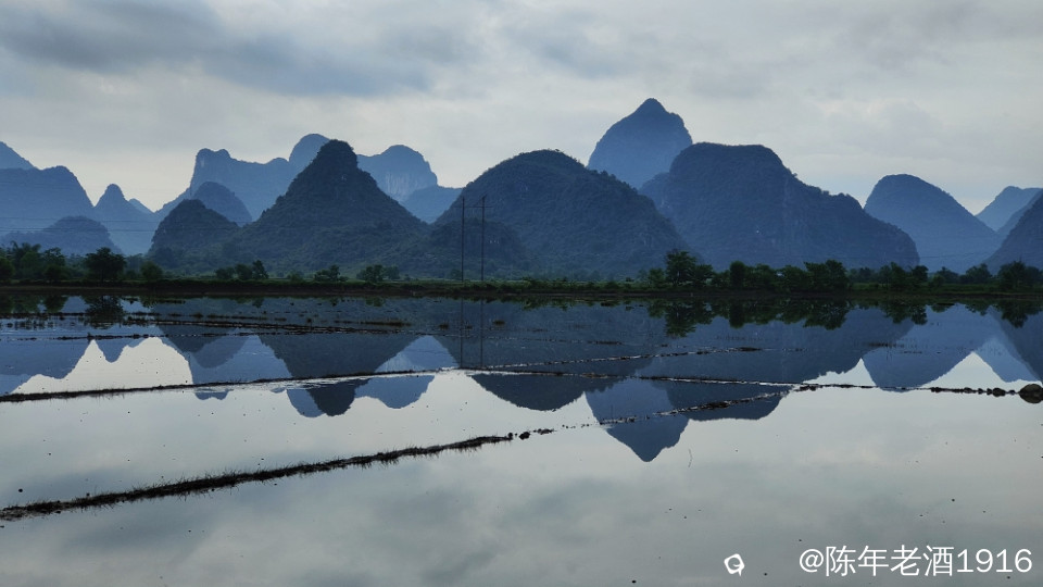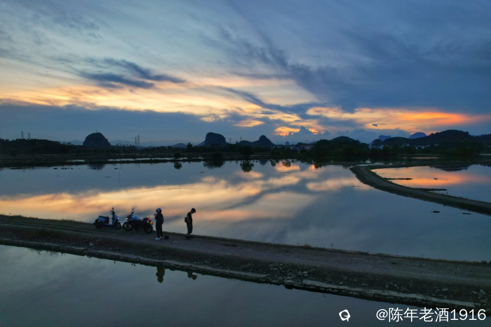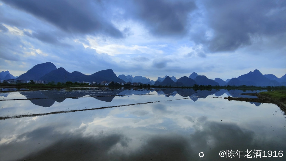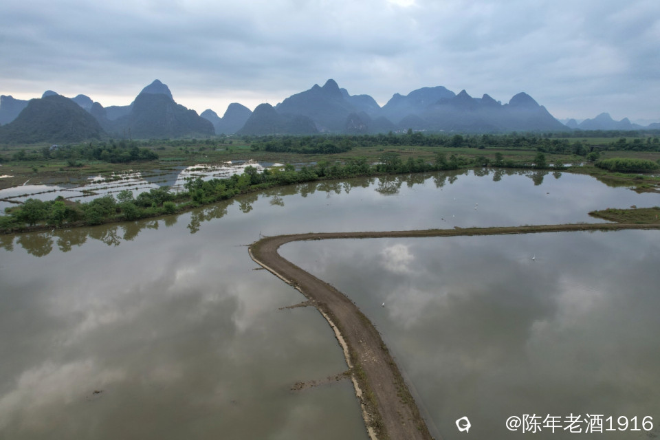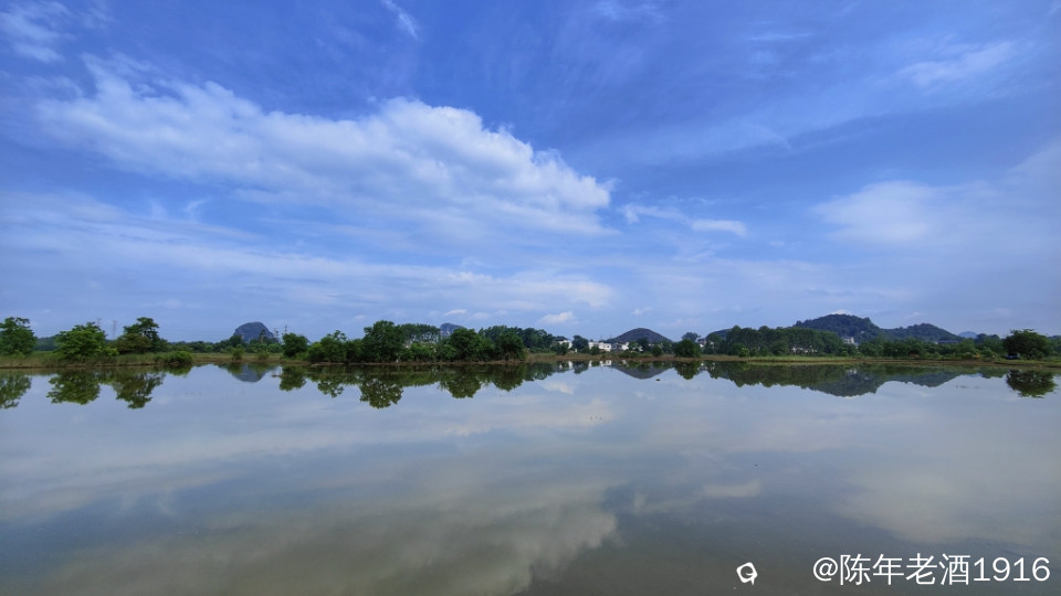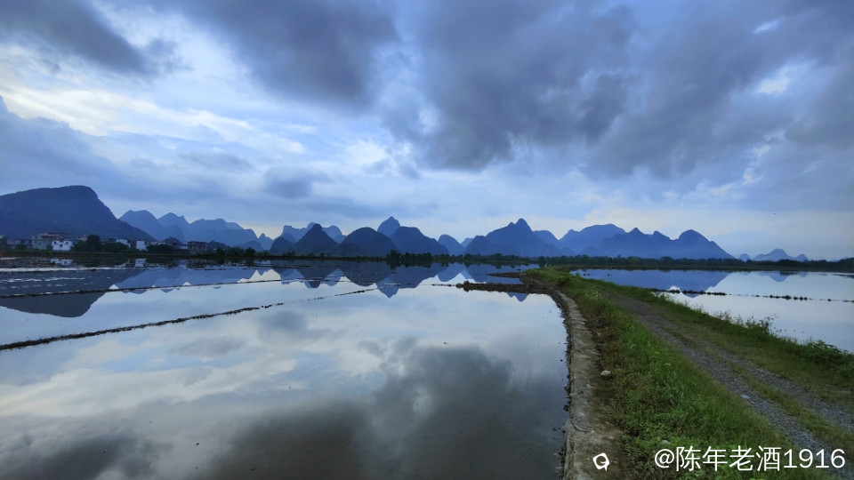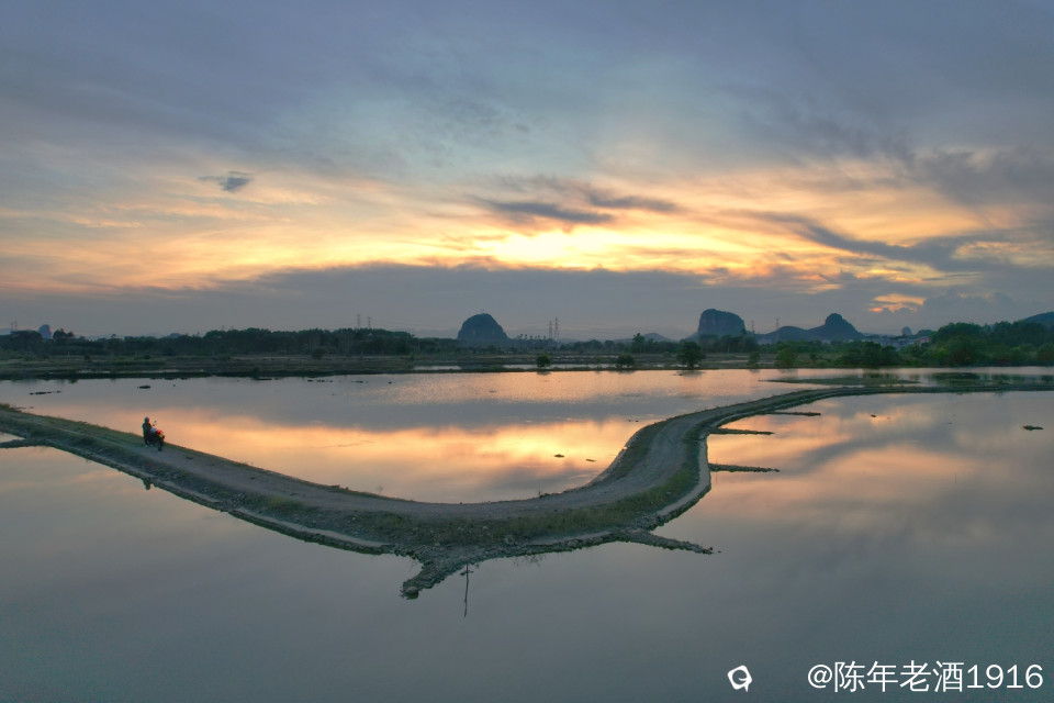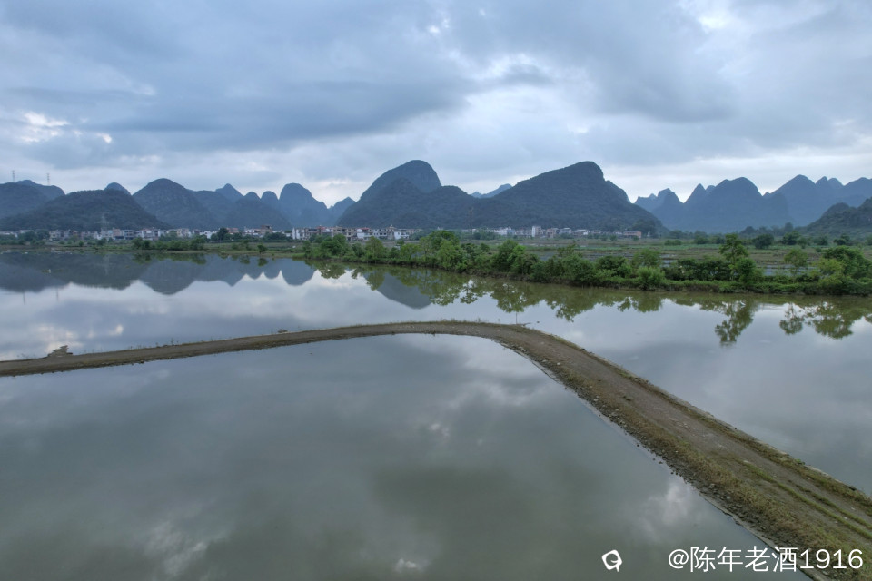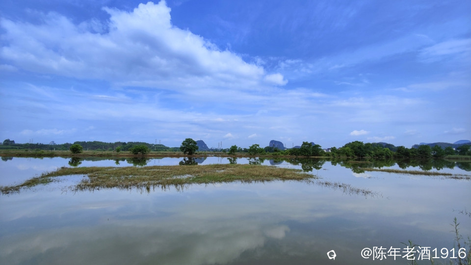 雨后的塘北,积水的农田被中间弯曲且高出的机耕路完美切割分离,形成两块大大的镜面,与连绵的远山勾勒出一幅幅美丽的画卷,不管是阴雨天还是晴空万里,这里的风景都不会让你失望,甚至会让不少朋友着迷。