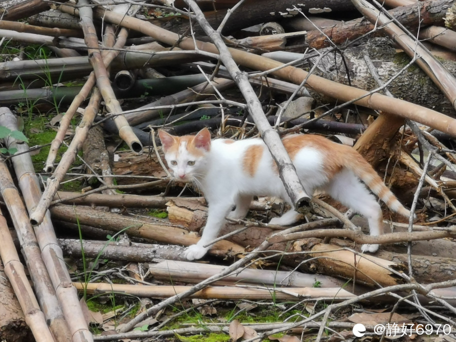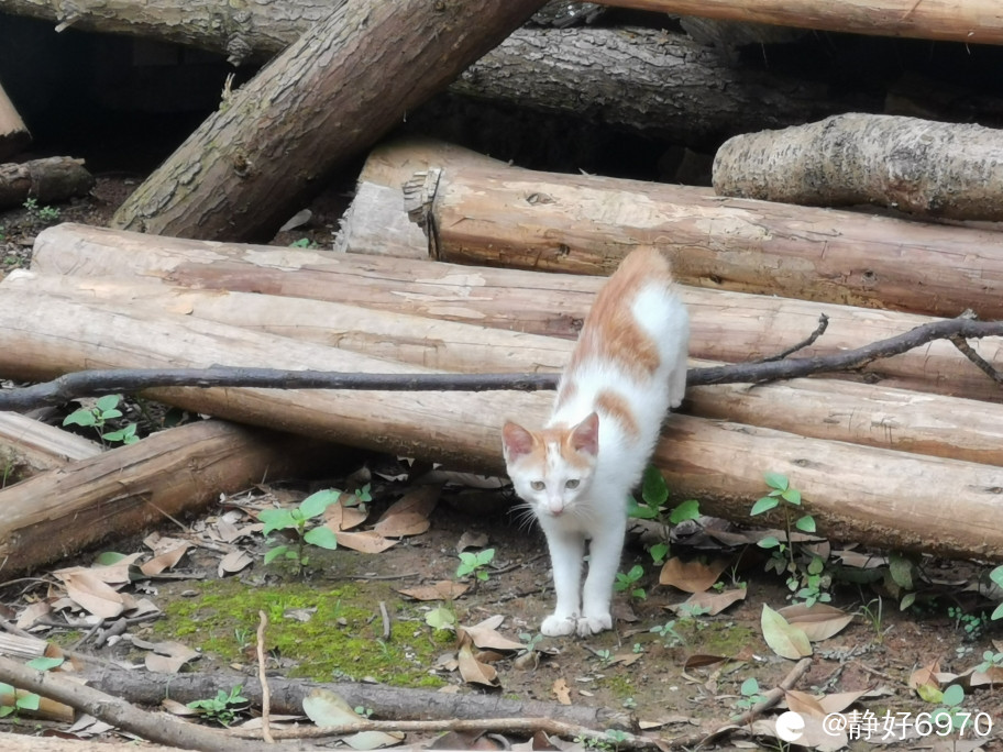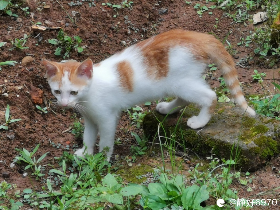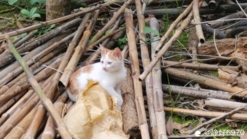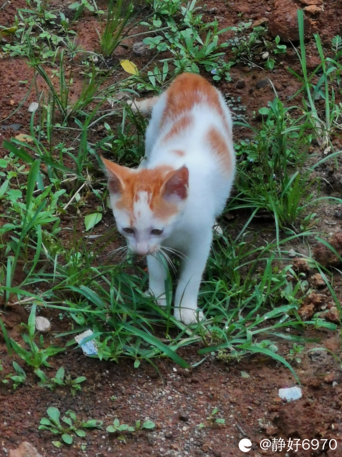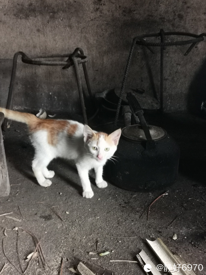 今天送父母和舅妈回老家,途径舅舅家,一进门,就看见舅舅家的橘白小奶猫,好可爱,我随口叫一声“咪咪”,想不到它张口回敬我一句“喵……喵”。