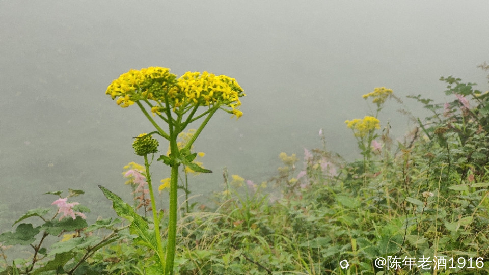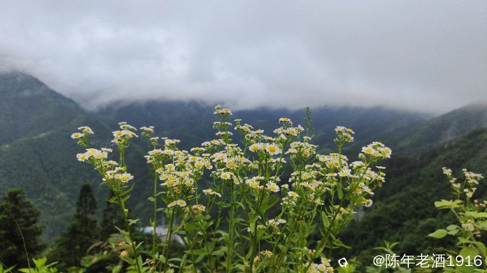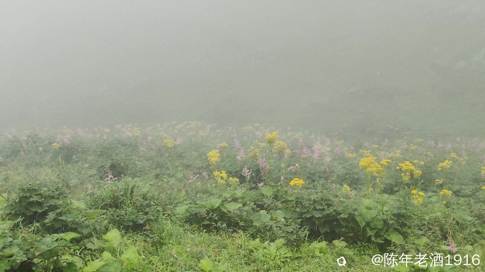 山花摇曳湿哒哒,雾大风大凉嗖嗖。