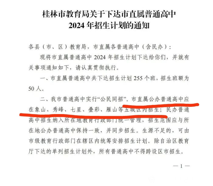 是不是真的?市区公办高中不招收各县和临桂区学生了?