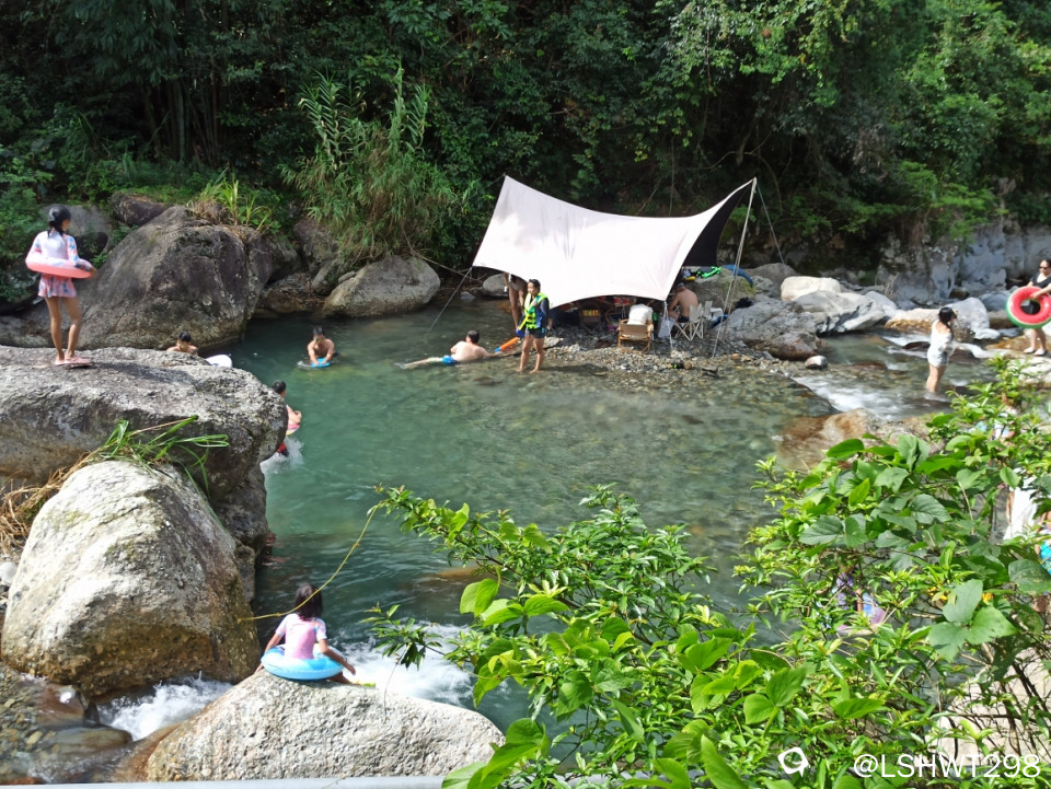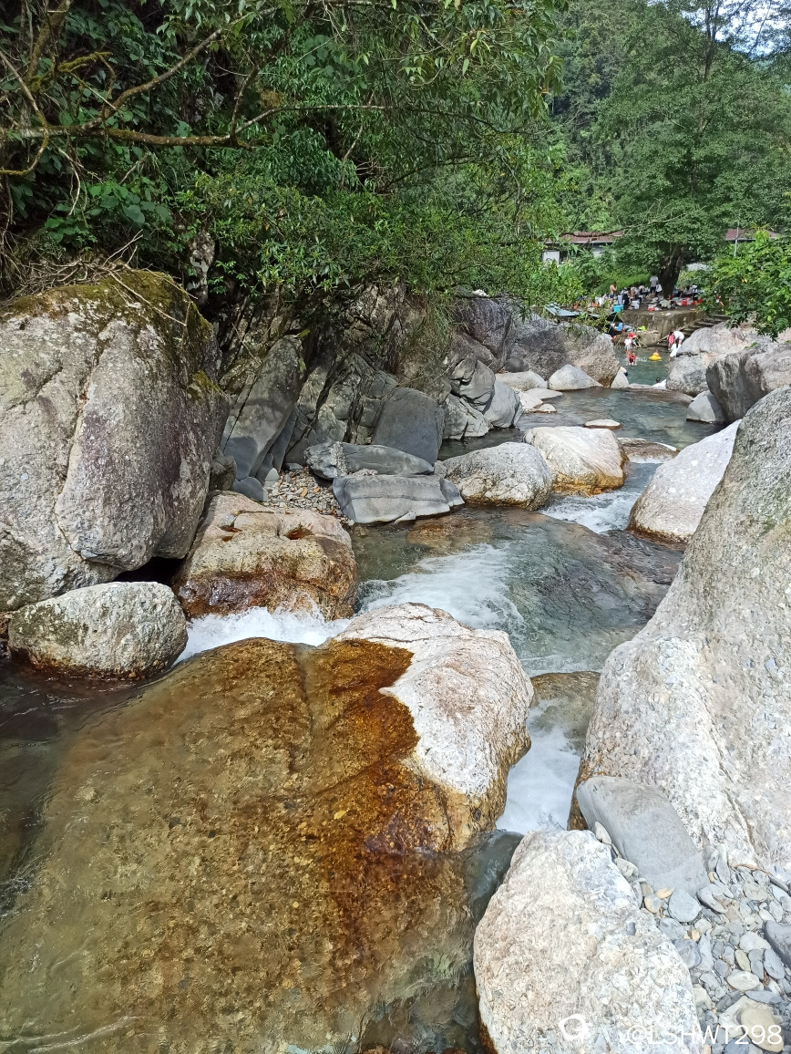 见牌左行,车放村里兰球场,村边峡谷处入口,早已是人山人海,目测水质已达本人泡水预期值。。。