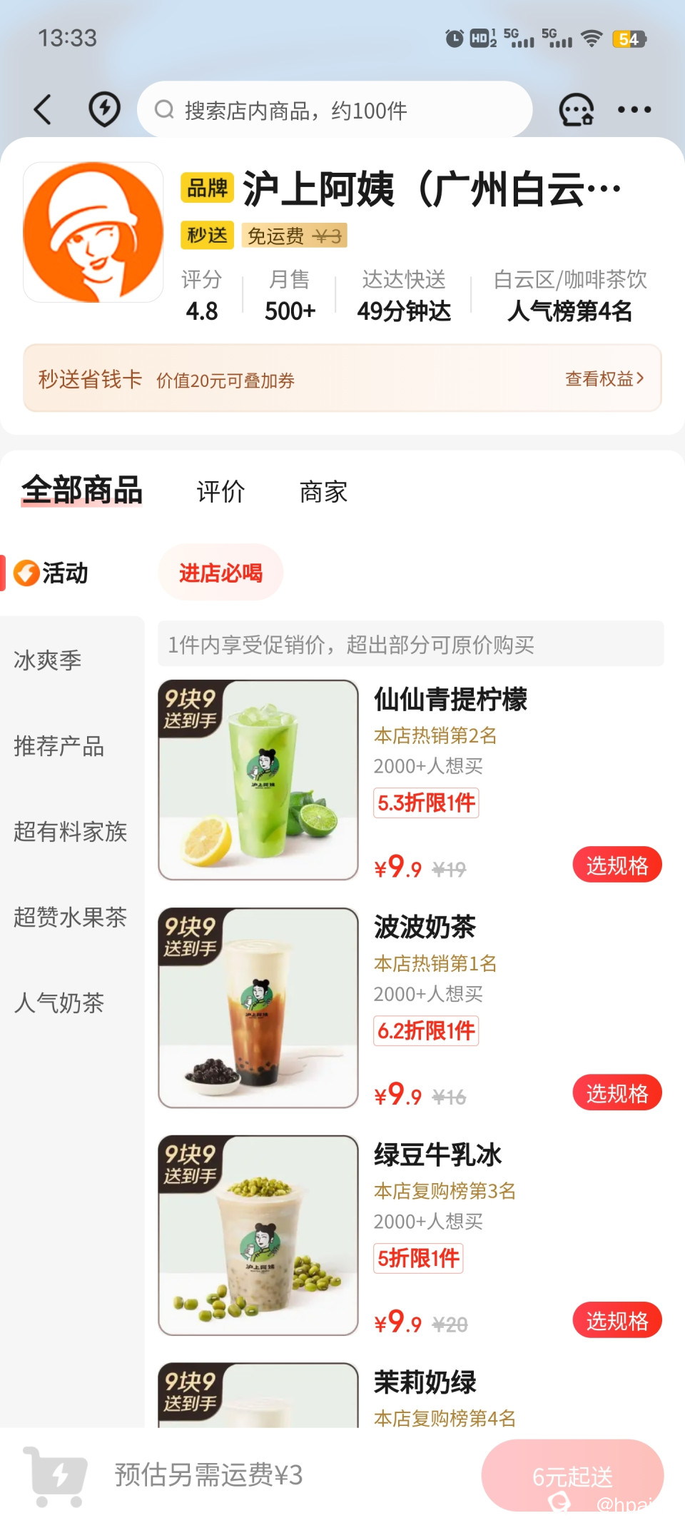 京东秒送,好多9.9元包送上门的茶饮,喝得好爽的样子
