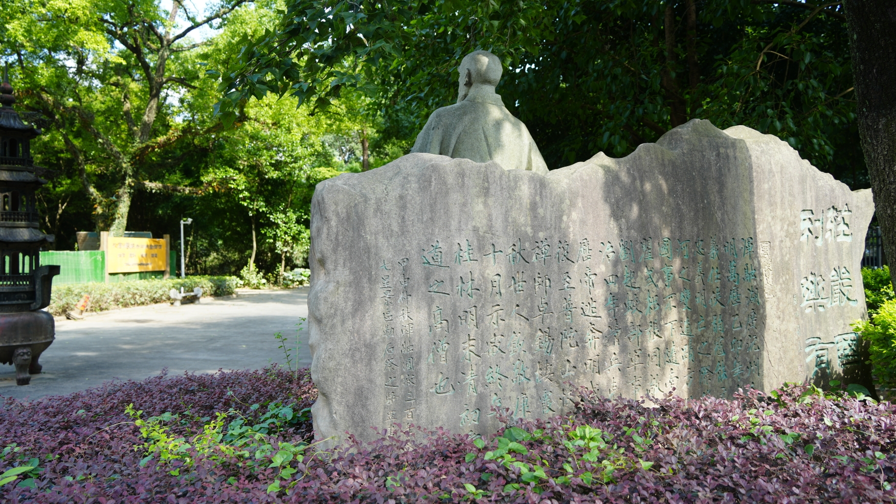 清顺治八年(1651年),浑融和尚募化四方,耗时三十三年,在寿佛庵基址上恢复了唐代栖霞寺。后浑融和尚圆寂于栖霞寺,享年九十岁,葬于栖霞寺前的灵剑江畔树荫下。现在浑融和尚雕像的所在地,正好是当年浑融和尚灵骨塔的地址。