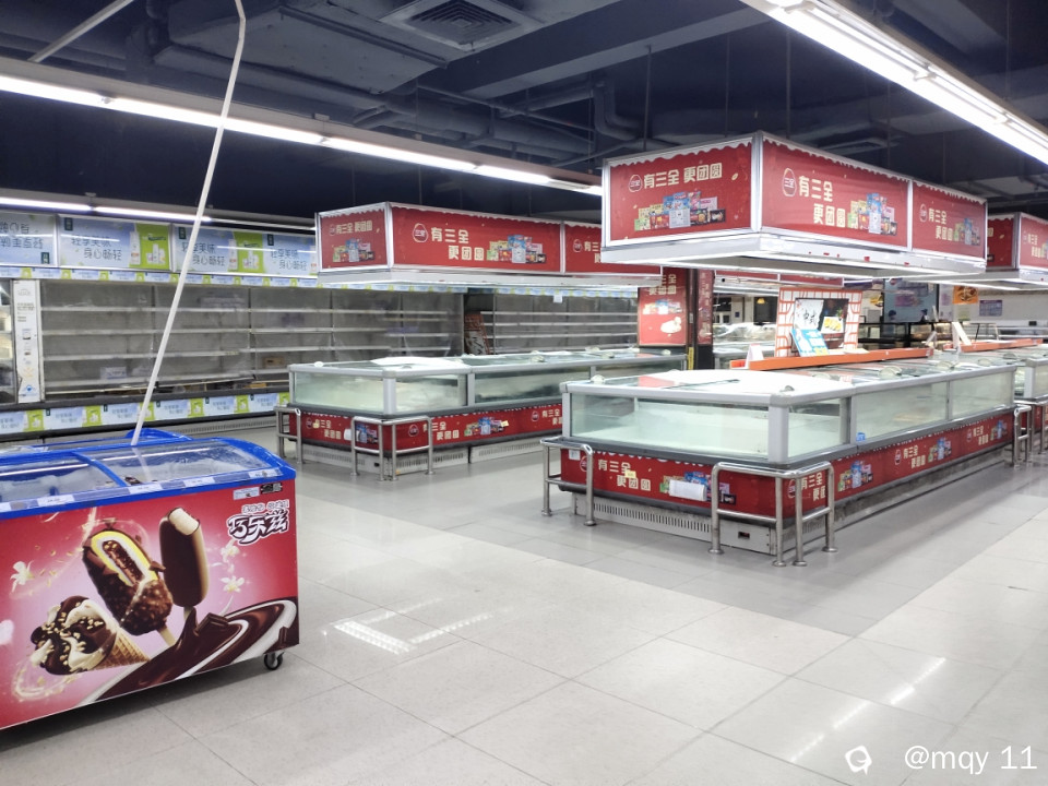 超市改造升级中,生鲜超市货架有点空荡荡,
