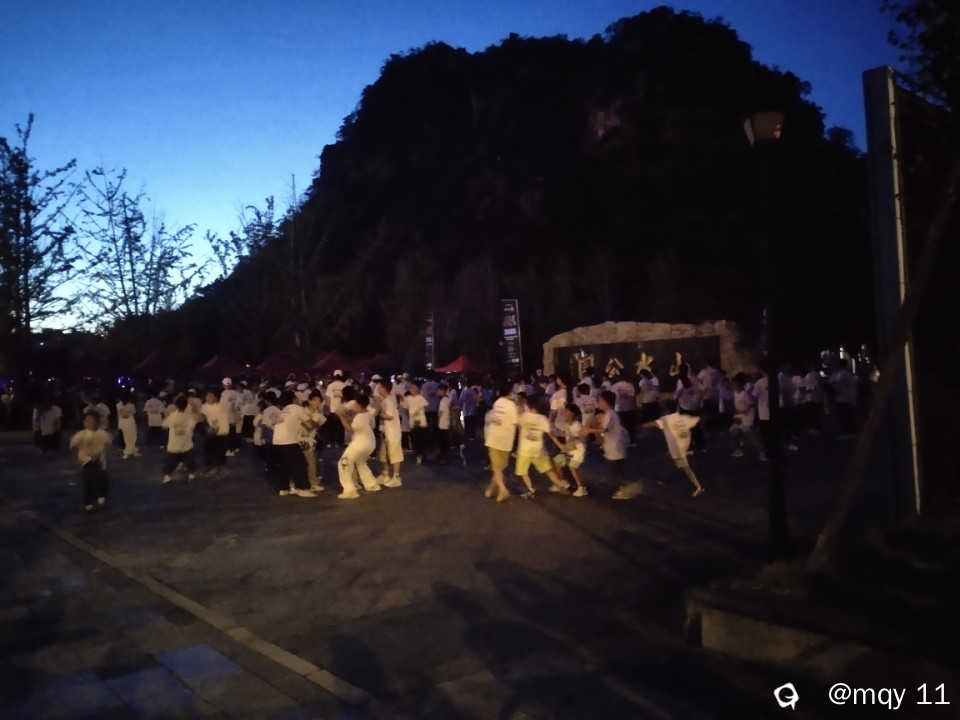 8月4日晚,在桂林山水公园大门口的广场,一大群跳舞的把爷仔,正在一起跳街舞,突然之间这么多人在跳街舞,感觉有点奇怪。