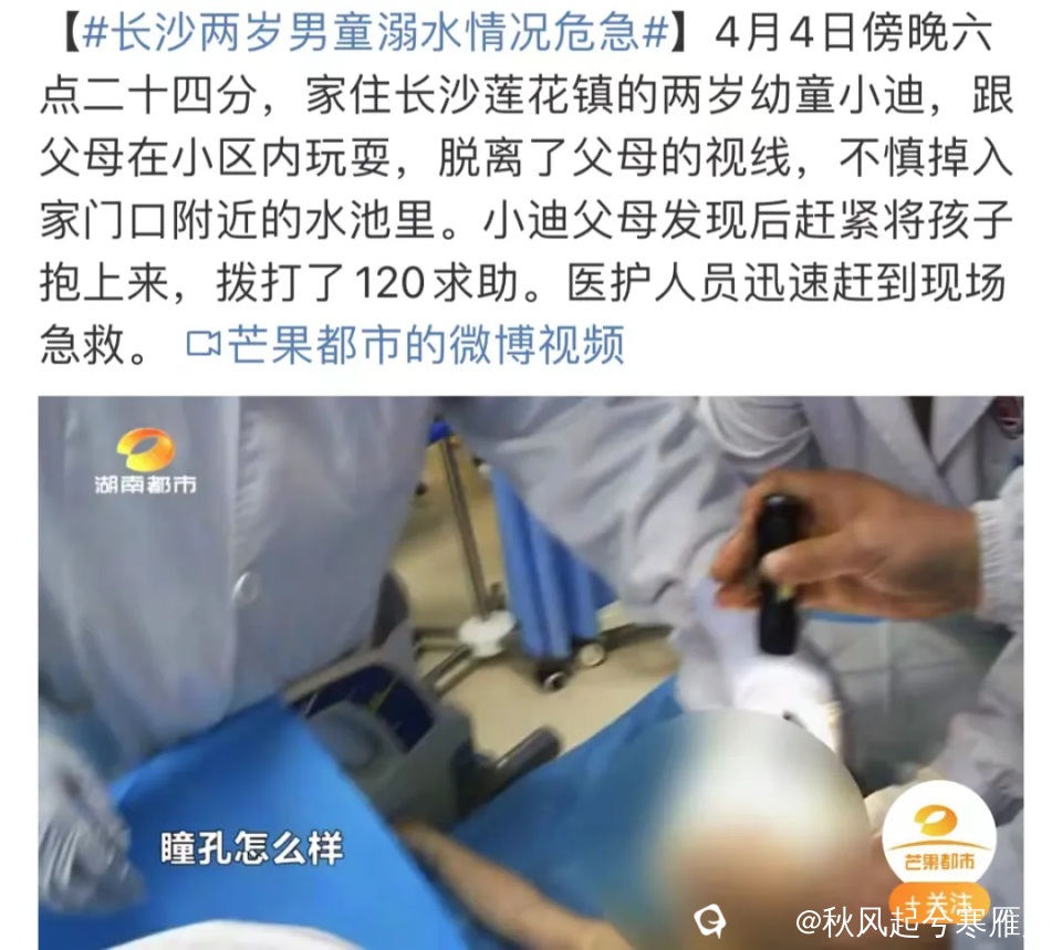 去年 4 月一位 2 岁小朋友在小区玩耍时,脱离父母视线,不幸掉落进水,情况危急。