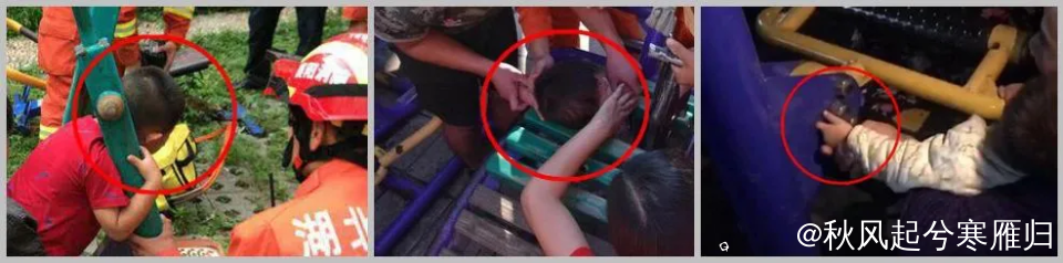 孩子天生好奇,本性贪玩,很容易把手、脚、头等部位伸到健身器材的缝隙里,引发危险。