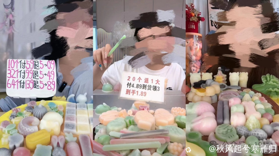 颜色鲜艳、造型多样可爱、咬一口就能感受到果酱的爆浆口感……登陆各大直播平台,只见五颜六色的糖果被制作成各种不同的样式,直播间的主播熟练地在镜头前展示蜡瓶糖的样子,一边咬开外层的蜡壳,内侧的果酱随之爆开,清脆的“咔嚓”声和咀嚼声也从屏幕中传来。那么,为什么嚼起来嘎嘣脆的蜡瓶糖会成为“流量密码”?