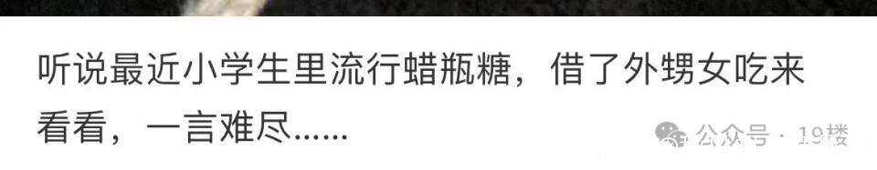 “我算是明白为什么之前网友形容为:味同嚼蜡了!有一次我路过一个夜市,看到有人在卖蜡瓶糖,各种形状的,有大也有大小,孩子缠着我要买。”市民王女士告诉志玲,孩子之前在学校里就看到别的小朋友吃过,当时就一直回来念叨,对此,王女士十分不解:“之前在孩子学校门口也见过卖蜡瓶糖的,真不明白这东西吃着有什么意思?究竟是谁在买?”