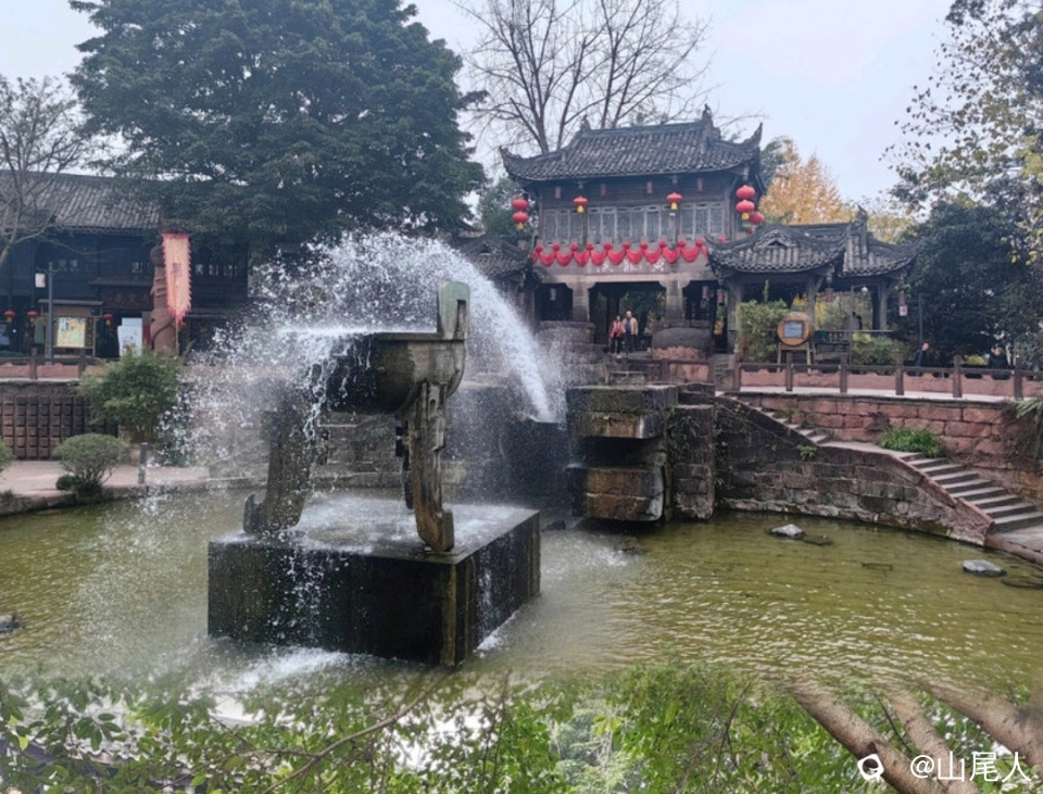 龙生九子,高台喷水成清溪,蜿蜒数里,游客戏水,蔚为大观!