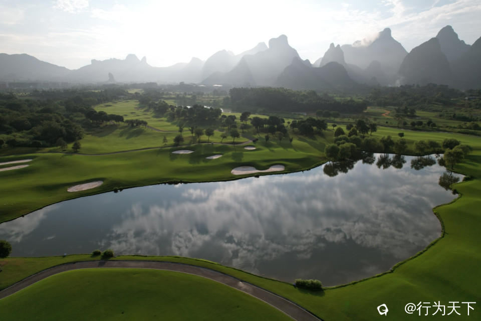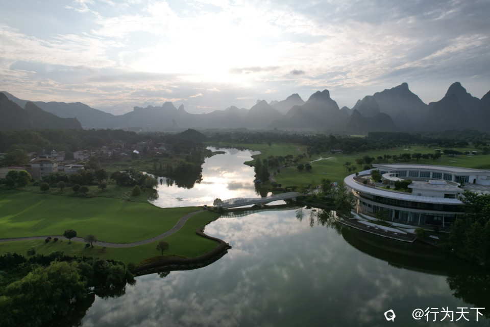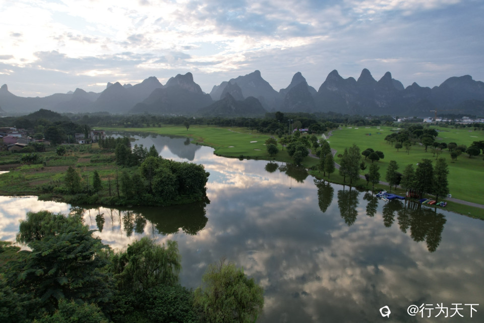 清晨的第一缕阳光,一起去看朝霞吧!这里不是瑞士,而是桂林网红4A景区:桂海晴岚,超大的绿色草场,黎明树影斑驳,湖光山色,将生活与优雅融进大自然,沉浸在这静谧的大自然中,找寻自己的诗和远方。远山朦胧,山远,吾近!有一种远山叫喊山,半壕春水一城雨,烟雨暗千山!