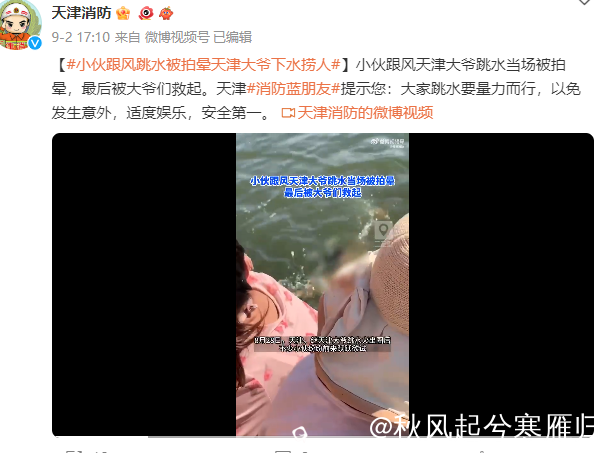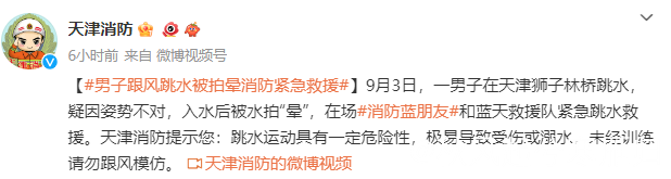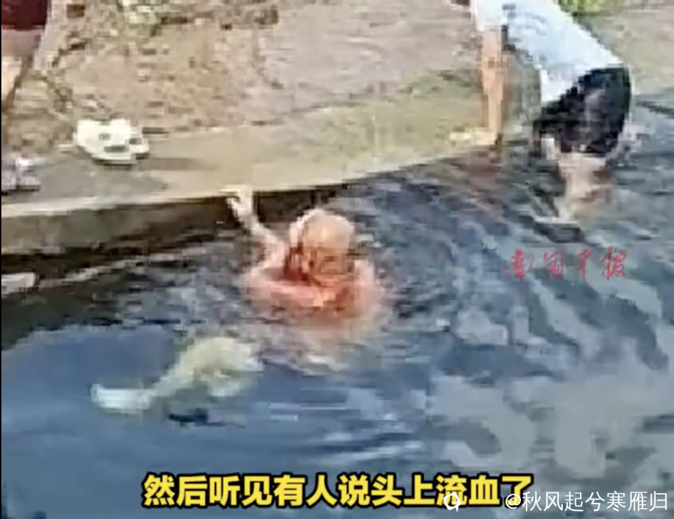 据现场目击者描述,当时他只是经过想记录男子跳水,结果没想到竟看到意外一幕。男子的头上破了一个小口子,旁边的人赶紧给他找纸包扎,之后男子就去医院治疗了。