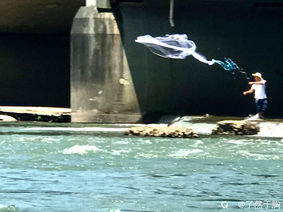 甘棠江上,每天都有垂钓的,下网捕鱼的,摸螺捞虾的,但愚以为,这撒网捕鱼的,动作潇洒,很是别致有一番风味。