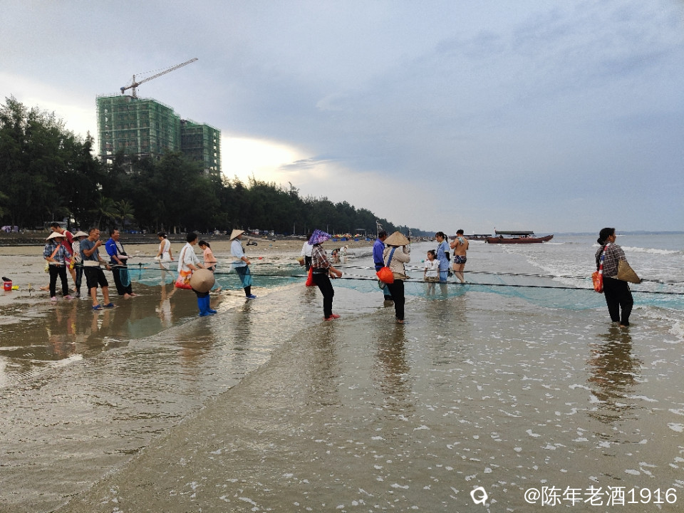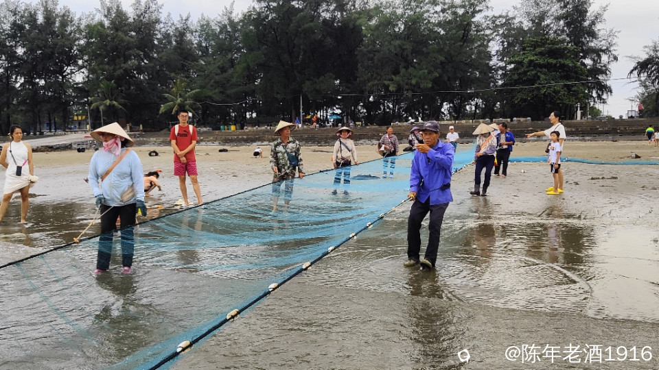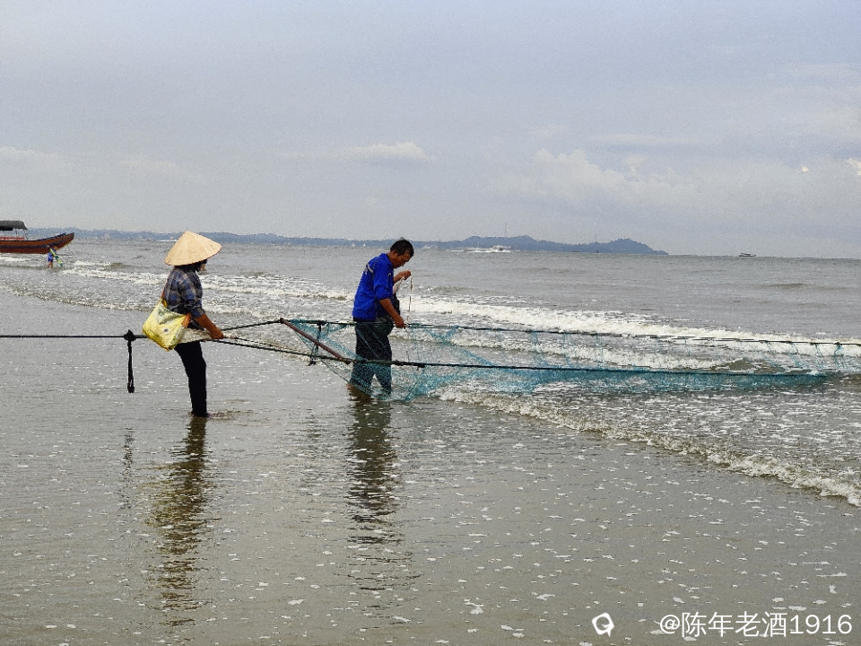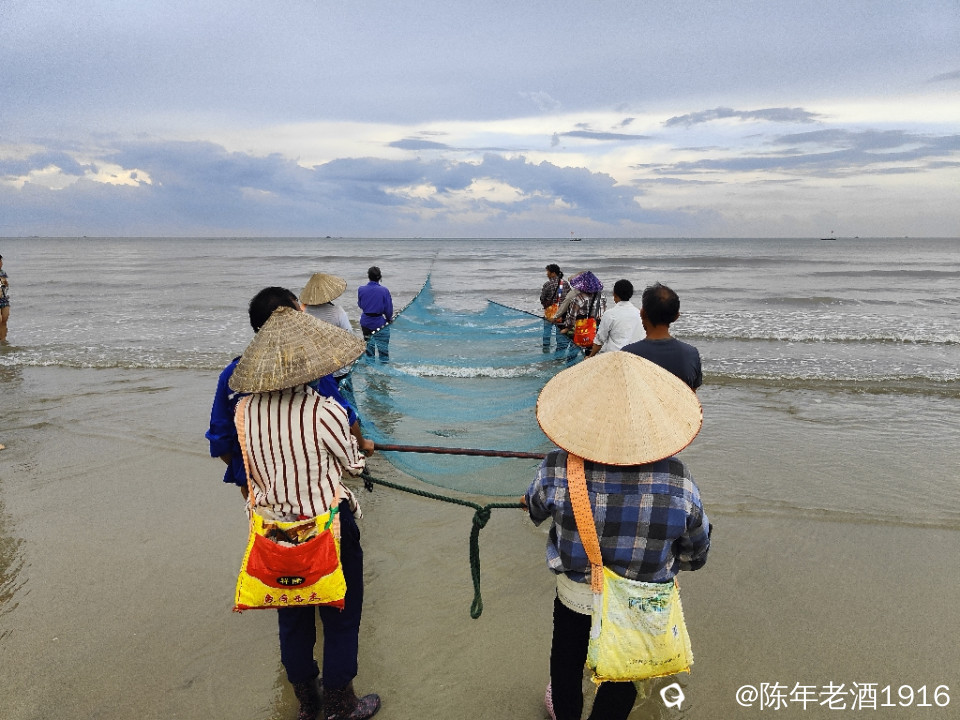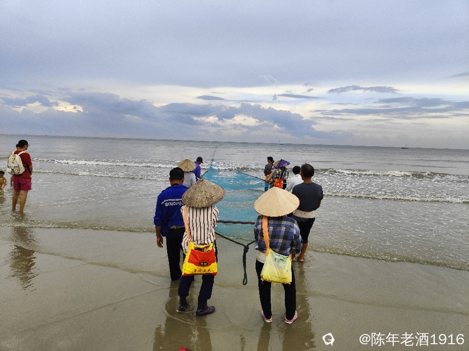 清晨,在金滩看朝霞,偶遇当地渔民在海滩边拉大网,出于好奇,我从渔民下网一直等到收网起鱼。