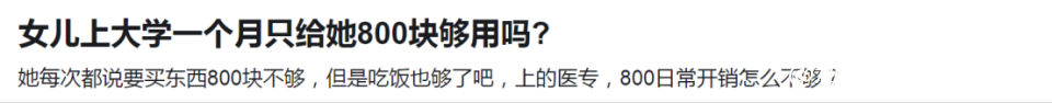 我就看到过一位家长在网上询问,给大一新生800块生活费,问大家够不够?