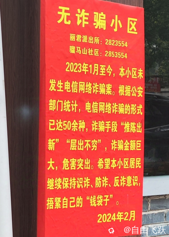 无诈骗小区,意为此小区没有人实施诈骗。(可以放心入内)。