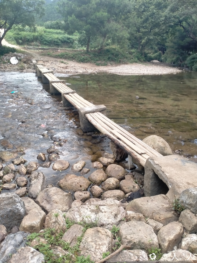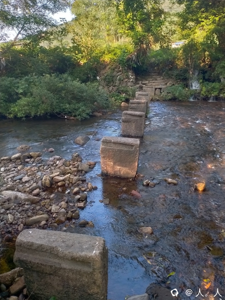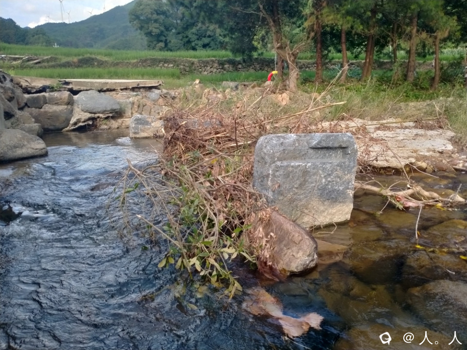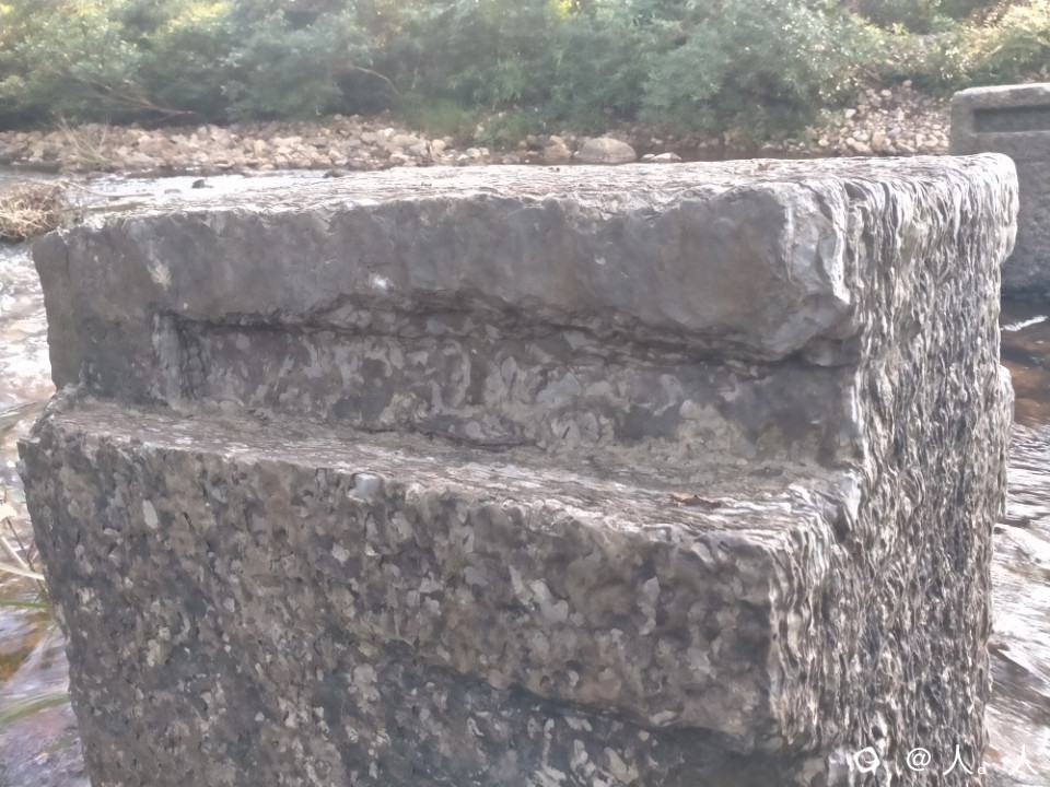 富村祠堂旁边这座保存完好,八墩长约25米,每个桥墩用整块巨石凿成,三分之一嵌入河床,上部两侧凿有长形凹槽,方便在洪水来临之前卸掉木板。