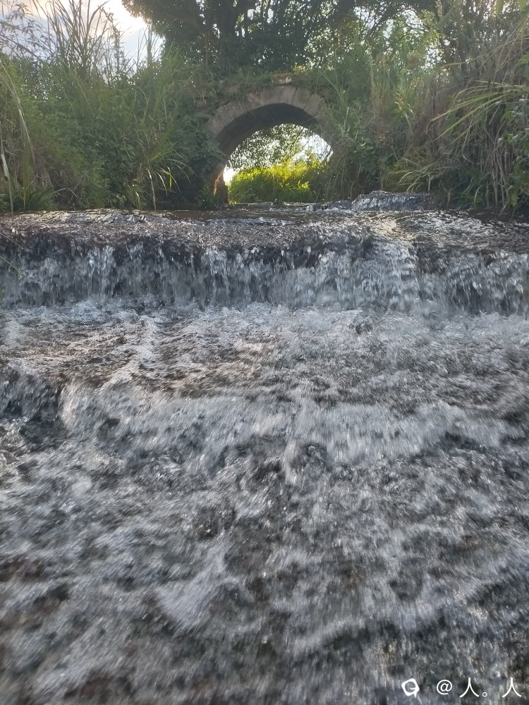 在高尚大北村,也有一座下游带瀑布的古桥,瀑布更大水流更长但是较平缓。