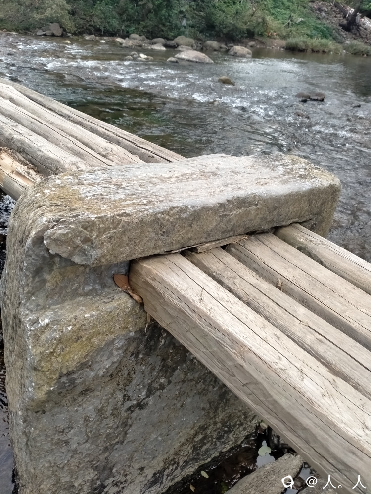 富村下游四百米的七墩桥没有了木板,可以更清楚地观察到古桥墩的结构。