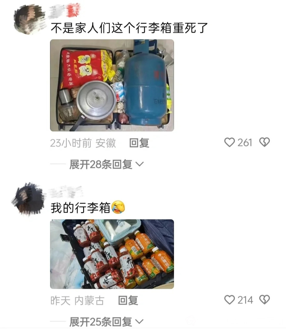 哈哈,带行李多的人还是少