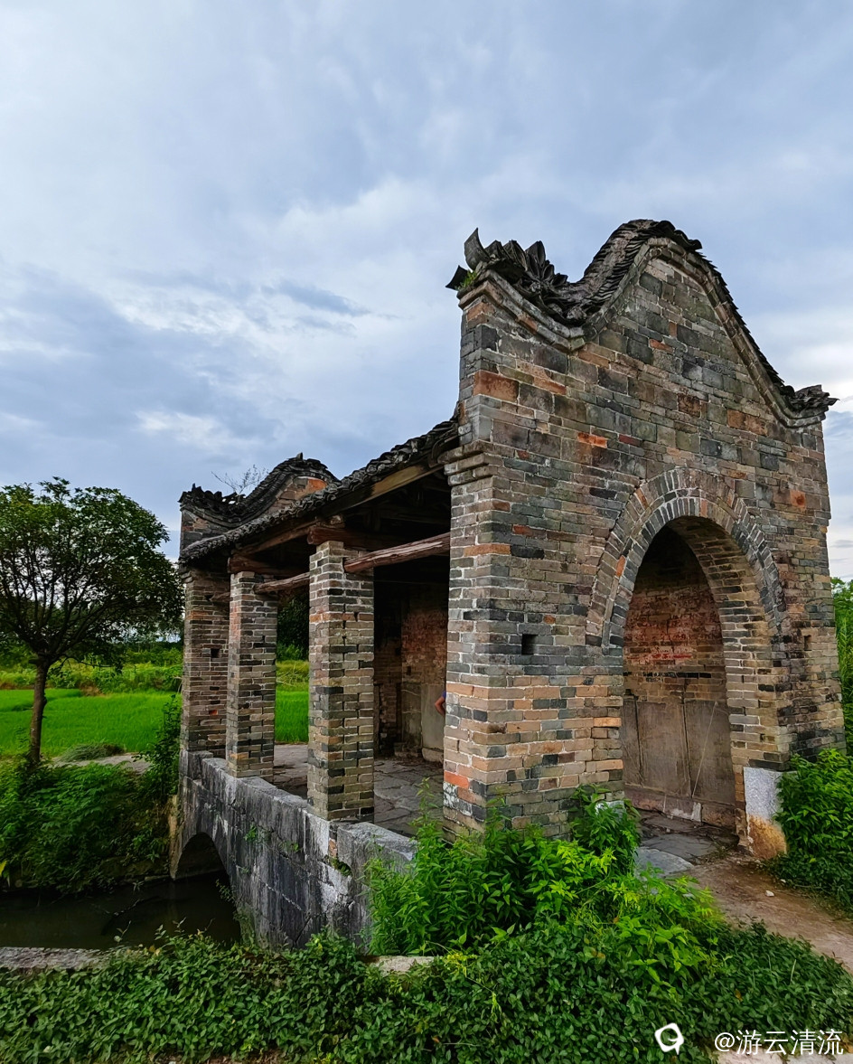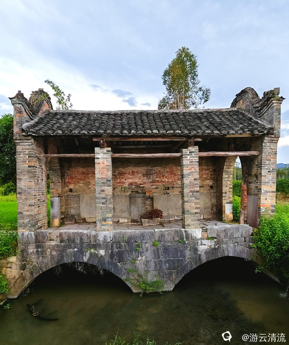 龙头桥位于潭下镇大泉村委黄田村,道光七年建,道光二十五年重修桥亭。矗立于一片稻田中间,由于建了新桥,已无行人通行。虽然年代已久,显得斑驳、沧桑,但仍可以欣赏到桥与亭的完美艺术之合。